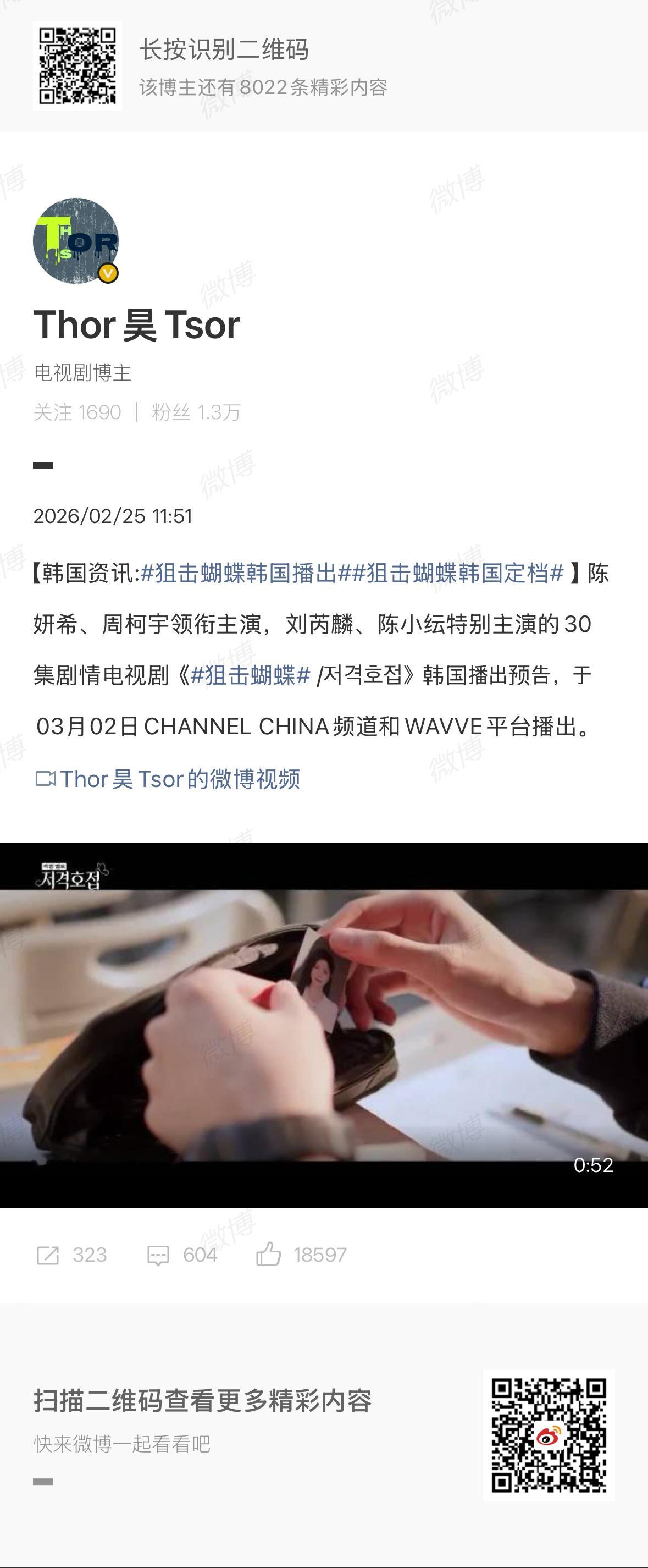 Thor昊Tsor的热搜记录 今日我创建的词条狙击蝴蝶韩国定档 第二次登上微博热
