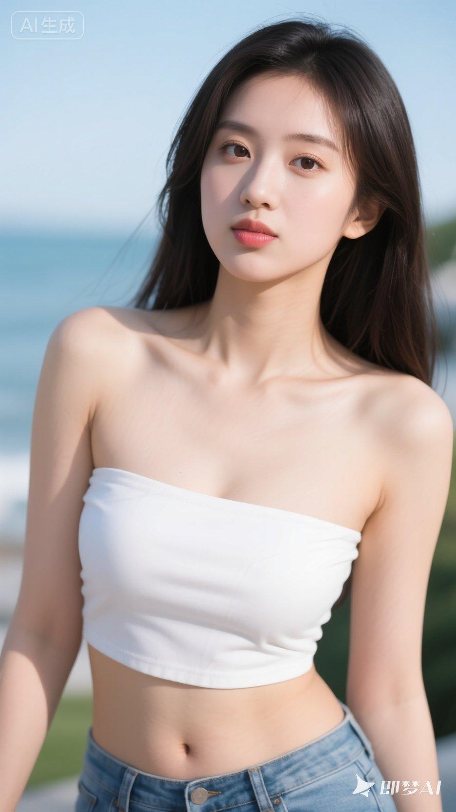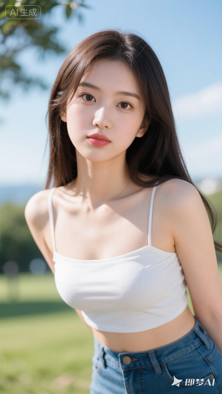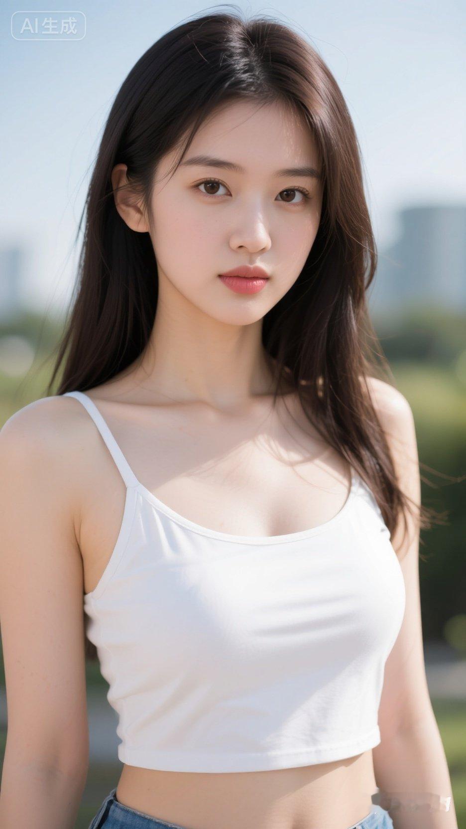 夏日清新穿搭,白色背心搭配牛仔裤,简约又时尚!