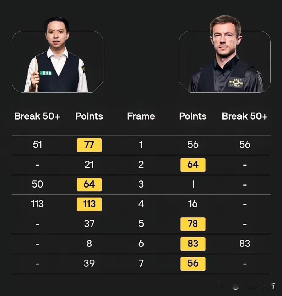 斯诺克历史上只有3人做到过在七局四胜制的比赛中打出四杆破百获胜:第一位:尼尔