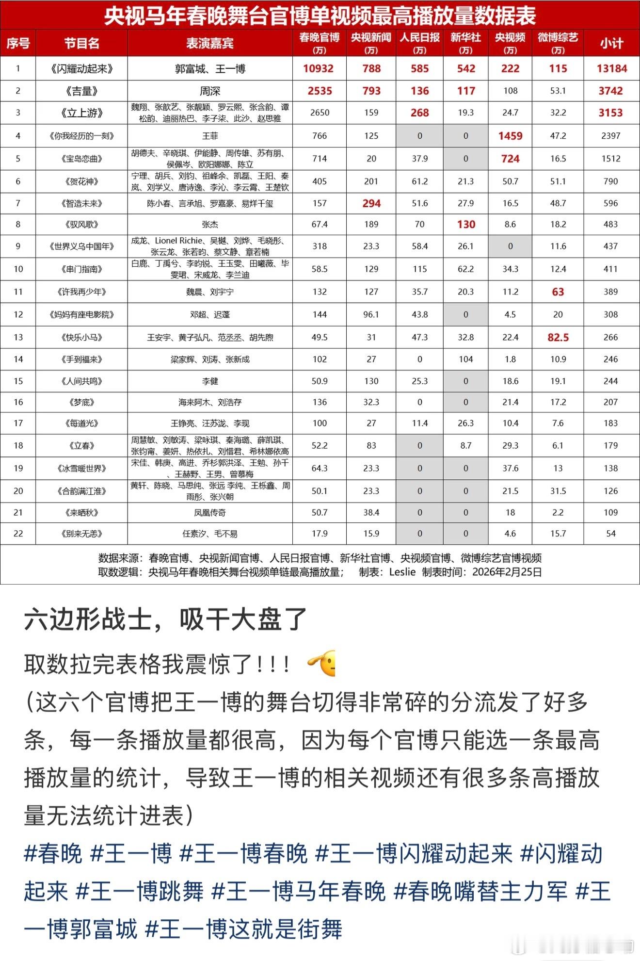 王一博 央视马年春晚舞台播放量,王一博郭富城闪耀动起来唯一破亿1.3亿大断层