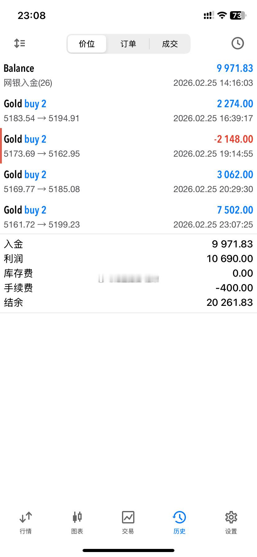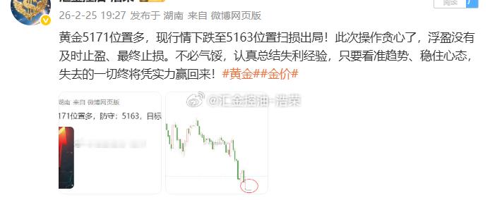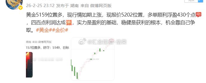 2026.2.25日操作5单,4胜1负!共收割690点利润。曲曲折折的路总有它的道理,只希望最后一页是花开万里。今天到此收工,晚安!黄金 金价 晚安