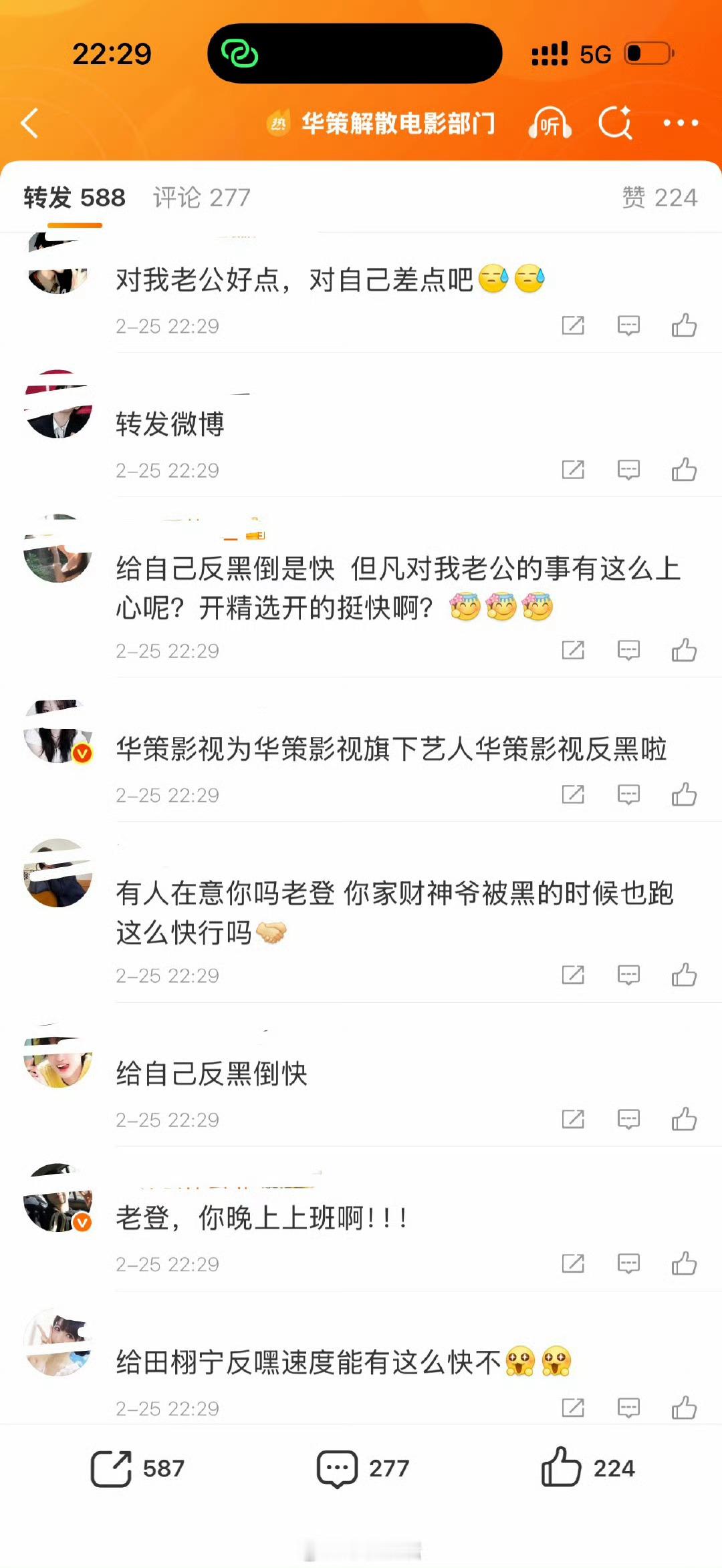 华策为自己打假辟谣了,电影部门没有裁减,是重组+战略升级。评论区开启了精选,转发区被田栩宁粉丝团建了