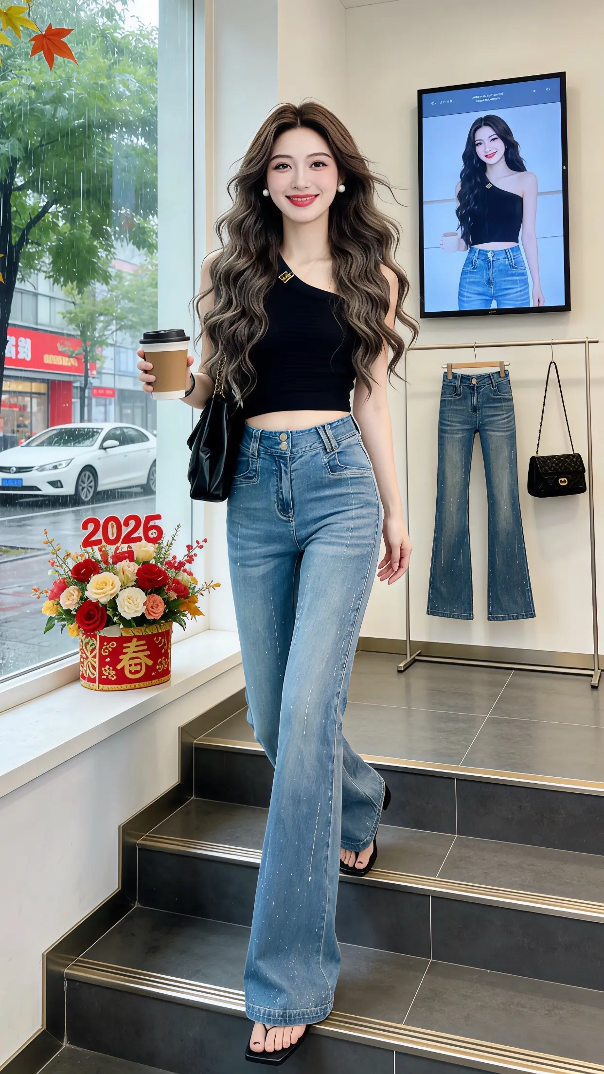 牛仔喇叭裤女高腰 穿出自己的风格 早春穿搭 谁穿谁好看 微喇裤