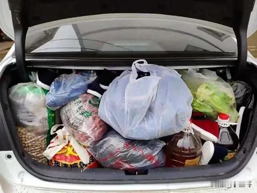 今天要返程上班了, 昨天晚上二老就在家准备东西了。 鸡蛋、菜籽油、猪肉(自家养的猪)、黄心菜、大蒜…… 说家里种的菜纯天然无污染, 恨不得把家都搬过来。 这装满的不是菜, 而是满满的一后备箱爱! 你们的后备箱也装满了吗?