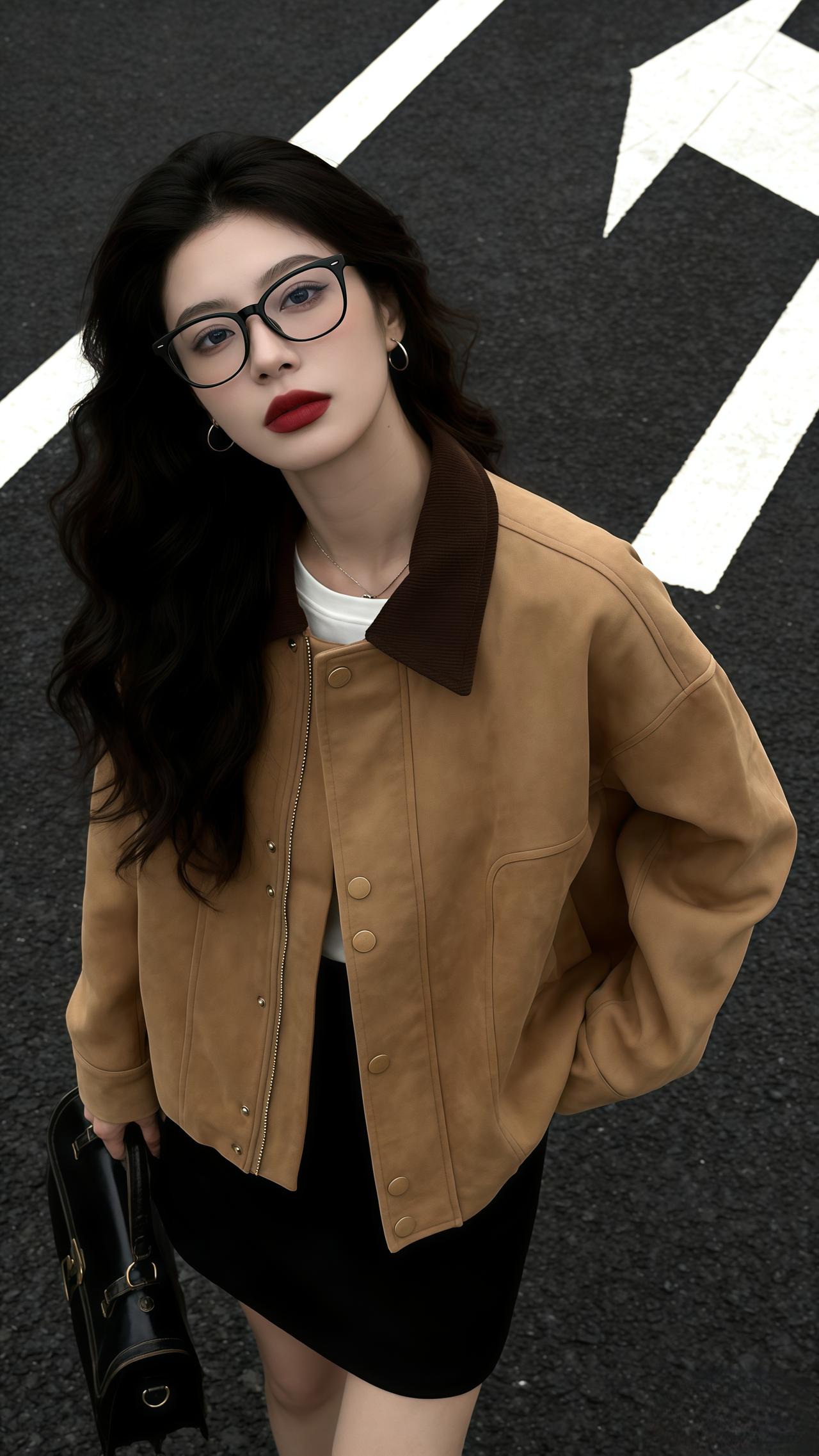 都市酷女孩的穿搭,讲究的就是一个又飒又美。上衣选短款皮夹克准没错,它自带酷感,
