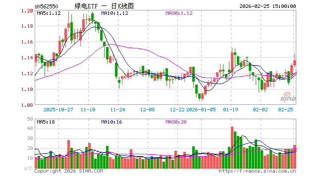 2月25日,绿电ETF(562550)涨0.53%,成交额2658.75万元。当日份额减少400.00万份,最新份额为3.19亿份,近20个交易日份额减少1550.00万份。最新资产净值计算值为3.63亿元。