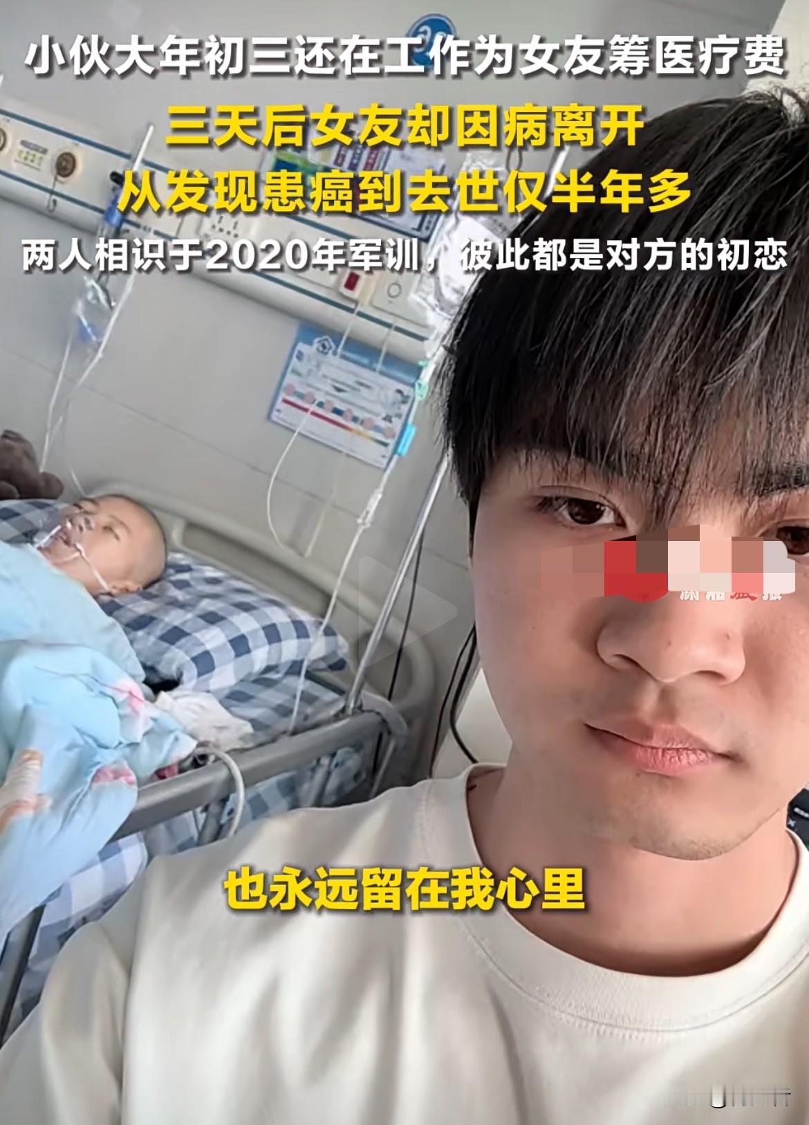 广东茂名李先生2020年大学军训,他与女友邂逅,去年9月女友确诊癌症晚期,李先生不离不弃,陪她奔波于北京、上海看病,网上筹一万多元治疗费。过年还攒钱买女友心仪手机。大年初六,女友21岁生命戛然而止。他们自始至终没想分开,女友也无比坚强。这场相爱却难相守的爱情太遗憾……