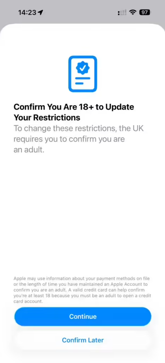 苹果iOS 26.4测试版在英国上线年龄验证机制,耗时不到30秒