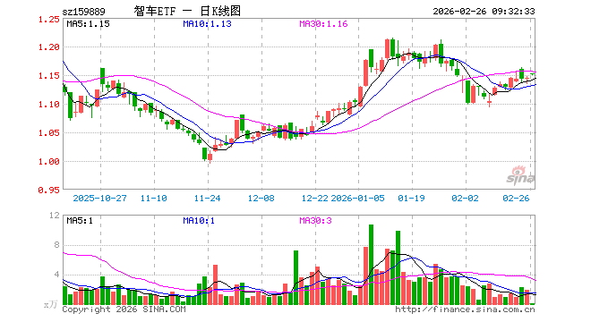2月26日,智能汽车ETF(159889)开盘涨0.79%,报1.153元。智能汽车ETF(159889)重仓股方面,拓普集团开盘涨0.01%,豪威集团涨0.22%,科大讯飞涨0.02%,比亚迪跌0.05%,长安汽车涨0.00%,赛力斯跌0.22%,芯原股份涨1.90%,立讯精密涨0.02%,北京君正涨1.10%,德赛西威跌0.37%。