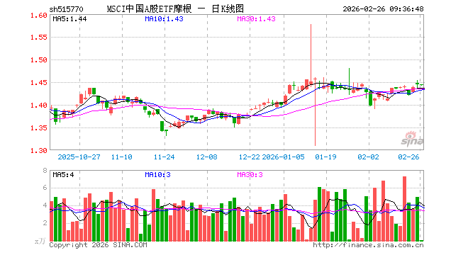 2月26日,MSCI中国A股ETF摩根(515770)开盘涨0.00%,报1.444元。MSCI中国A股ETF摩根(515770)重仓股方面,贵州茅台开盘跌0.34%,宁德时代跌1.69%,招商银行涨0.05%,工业富联涨0.02%,中国平安涨0.69%,紫金矿业涨0.66%,中际旭创涨0.00%,长江电力涨0.04%,农业银行跌0.15%,寒武纪涨1.15%。