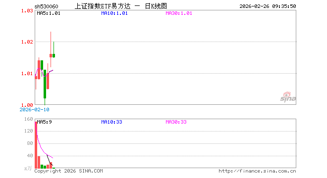 上证指数ETF易方达(530060)业绩比较基准为上证综合指数收益率,管理人为易方达基金管理有限公司,基金经理为聂启文,成立(2026-01-30)以来回报为1.70%。