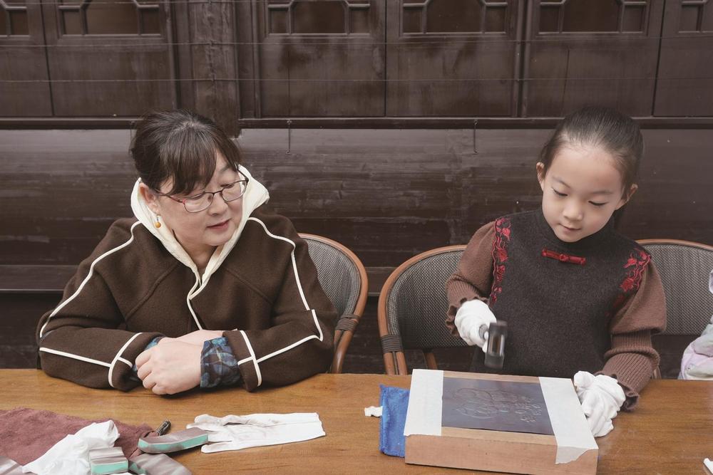不同于以往印象中非遗体验的“高冷”,这里没有枯燥的理论讲解,没有遥不可及的大师壁垒,只有触手可及的铜片、特制的工具,还有孩子们眼里藏不住的好奇。我陪着月末,和其他孩子一起,手持工具在铜片上反复敲打,“叮叮当当”的声响里,从模糊轮廓到清晰肌理,从生疏试探到熟练操作,一幅专属我们的铜画慢慢成型。
