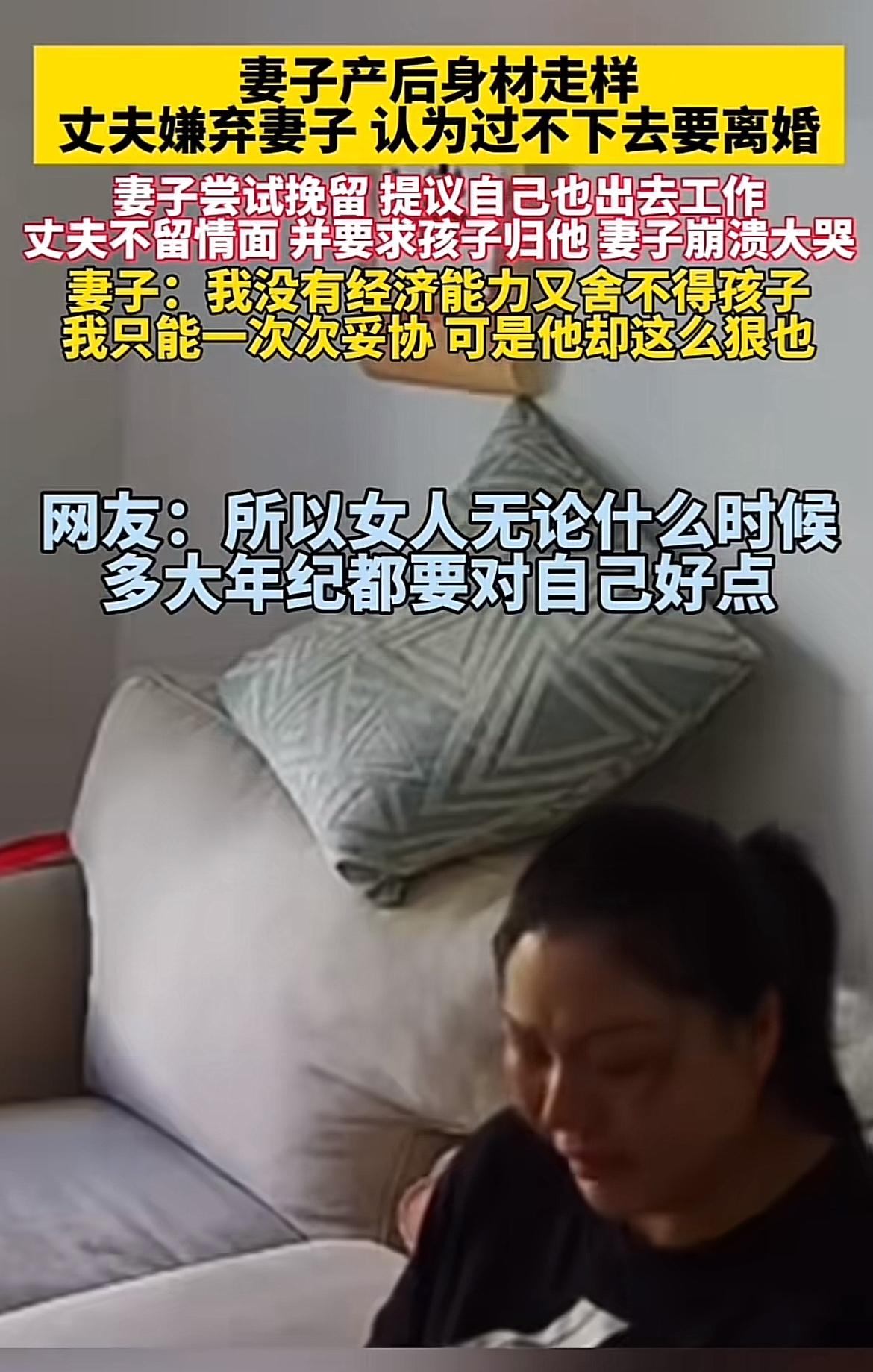 产后身材走样就被丈夫嫌弃甚至闹离婚,这也太让人心寒了。之前看孟非主持的节目,有男嘉宾搞奇葩离婚协议,要求老婆在规定日期减到120斤,不然就离,还嫌弃老婆吃多、家暴,自己没工作却要求老婆有迪丽热巴的脸。还有个女生,产后从90几斤涨到130斤,老公工作忙常应酬,还被传和女生出去吃饭,问他还说女生敏感。 女人生孩子本就不易,身材走样也是为了家庭。那些只看外表的丈夫真该反思。当然,宝妈瘦身是为自己健康和美丽,等孩子半岁后就可以行动起来。