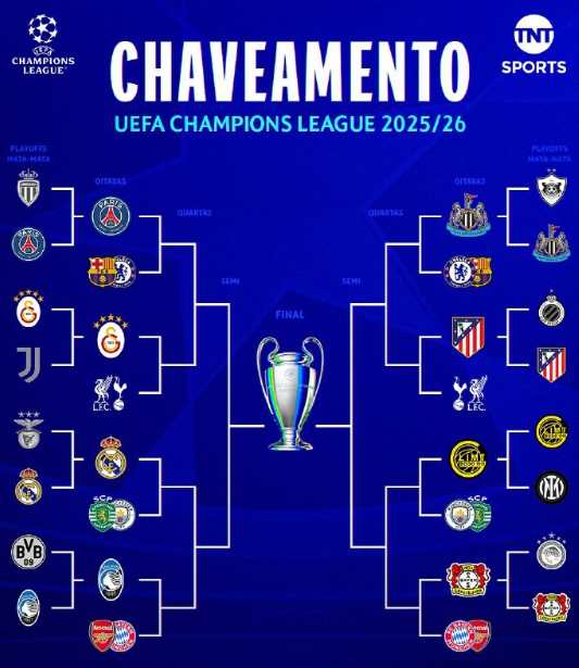 淘汰赛附加赛晋级8队:马竞、勒沃库森、纽卡、博德闪耀、皇马、巴黎、亚特兰大、加拉塔萨雷