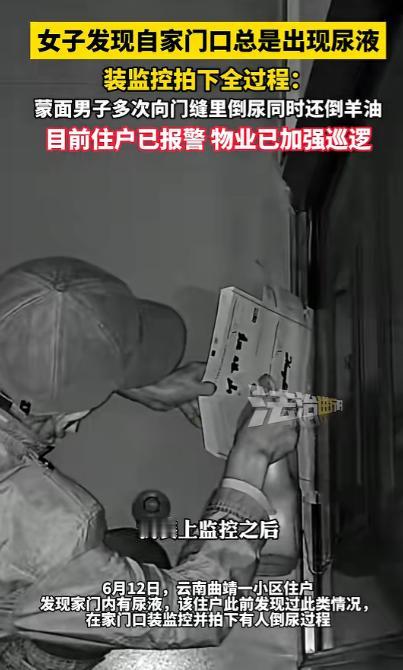 云南,一女子经常在早上醒来后,会闻到家里有一股小便的味道,她找了许久才发现味道竟是门口散发出来的,之后查监控发现是一名陌生男子偷偷往她家的门缝里倒尿液,女子十分生气。 住在云南曲靖的晏女士和妹妹一同居住在小区的 13 楼,原本平淡安稳的居家日子,却在一段时间里被一股挥之不去的怪味彻底打乱,成了姐妹俩挥之不去的烦心事。 每天清晨天刚亮,两人从睡梦中醒来,最先钻入鼻腔的不是窗外清爽的晨风,而是一股刺鼻又难闻的小便气味,那味道顺着门缝漫进客厅,飘在玄关各处,待在屋里的每一分每一秒都让人觉得浑身不自在。 最开始发现异味时,姐妹俩都以为是家里的卫生死角出了问题,谁也没往有人故意使坏的方向想。 晏女士先是把卫生间里里外外检查了个遍,马桶、地漏、下水管道逐一疏通消毒,就连墙角的缝隙都擦得一尘不染,可异味丝毫没有消散。 她又把厨房的垃圾桶、油烟管道、橱柜底部全部清理一遍,更换了新的清洁用品,依旧没能找到气味的源头。 姐妹俩轮番上阵,把卧室、阳台、储物柜都翻查了一遍,甚至怀疑是家里的物品变质,把闲置的东西一一清理出去,可那股尿骚味就像扎根在了家里,每天准时出现,越闻越让人心里发堵。 接连几天的排查毫无结果,姐妹俩开始顺着气味的方向一点点寻找,最终把目光锁定在了家门口的防盗门处。 打开门查看,楼道里干净整洁,没有垃圾堆放,也没有宠物留下的痕迹,可一关上家门,浓烈的异味就从门缝里源源不断地渗进来。 本以为只是偶然出现的情况,没想到没过多久,门缝里又多了一股油腻的膻味,两种味道混合在一起,比单纯的尿骚味更让人难以忍受,这时两人才意识到,这根本不是家里的问题,而是有人刻意在门口做了手脚。 晏女士和妹妹在小区居住多年,平日里和邻里相处和睦,出门碰面都会主动打招呼,从来没有和任何人发生过争执,更没有结下任何矛盾,实在想不通为何会被人这样针对。 她们尝试过早起守在门口,也向周边邻居打听情况,可楼道里人来人往,始终没有发现任何可疑的人或事,这段时间里,姐妹俩被异味搅得寝食难安,出门回家都觉得心里膈应,连正常的生活节奏都被彻底打乱。 为了彻底弄清楚事情的真相,也为了守护自家的居住安全,晏女士特意购置了监控设备,安装在门口正对楼道的位置,希望能通过监控找到异味的来源。 安装好监控的前几天,姐妹俩每天都频繁查看录像,白天的画面里,楼道里住户正常进出,保洁人员按时清扫,一切都井然有序,没有任何异常情况。 她们没有放弃,依旧坚持查看凌晨时段的录像,没想到真的捕捉到了让人又气又惊的画面。 监控画面清晰记录下,连续两天的凌晨时分,一名老人悄悄来到晏女士家门口,老人全程头戴帽子、口罩,把脸部遮挡得严严实实,完全看不清容貌。 他手里拿着装有不明液体的瓶子,还特意准备了一块纸板,蹲在门口小心翼翼地将纸板抵在门缝处,把瓶中的液体顺着纸板慢慢导流进晏女士家的门缝里。 从监控中能清楚分辨,老人先后倒入的分别是尿液和羊油,动作熟练且刻意,显然是针对性地做出这样的行为,连续多次的骚扰,让姐妹俩看完监控后瞬间怒火中烧。 亲眼看到自己家被人用这样恶劣的方式对待,晏女士和妹妹既觉得恶心又十分委屈,安分守己的生活被无端打破,这样的行为不仅严重污染了居住环境,还极大地影响了她们的身心健康。 冷静下来之后,姐妹俩第一时间选择拿起法律武器保护自己,她们整理好监控拍下的完整视频,带着清晰的证据前往派出所报警,向民警详细说明了事情的经过、持续的时间以及自己受到的困扰。 警方接到报警后高度重视这起事件,立即受理案件并展开调查。由于老人全程遮挡容貌,给身份核实带来了一定难度,民警依托监控画面,结合小区周边的公共摄像头,通过走访排查、信息比对等方式,全力开展工作,致力于尽快确定这名老人的身份,还原事情的全部经过。 与此同时,晏女士也将此事反馈给了小区物业公司。 物业得知情况后,第一时间做出应对安排,针对小区的安保工作进行调整,重点加强了凌晨等人员稀少时段的巡逻力度,安排安保人员加大对各单元楼、楼道的巡查频率,仔细排查可疑人员,避免类似的恶意行为再次发生。 居住在同一个小区里,邻里之间本应相互尊重、和睦相处,维护好共同的居住环境,这样恶意骚扰他人的行为,不仅违背了公序良俗,也会给自己带来相应的后果。 对于这件事,您有什么想说的吗?欢迎评论区留言讨论。 信源:法治进行时2025-06-12——《女子发现自家门口总是出现尿液,装监控发现:蒙面男子多次向门缝里倒尿同时还倒羊油,目前住户已报警物业已加强巡逻》