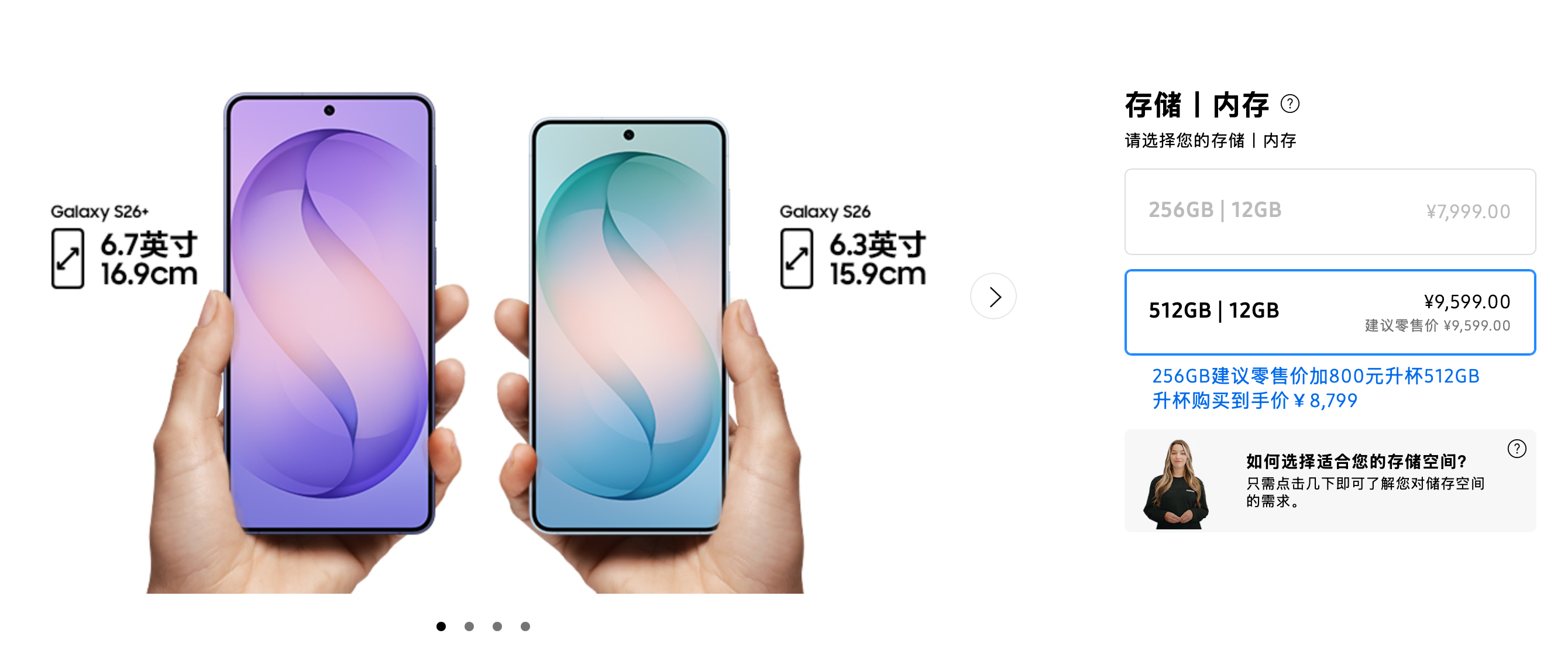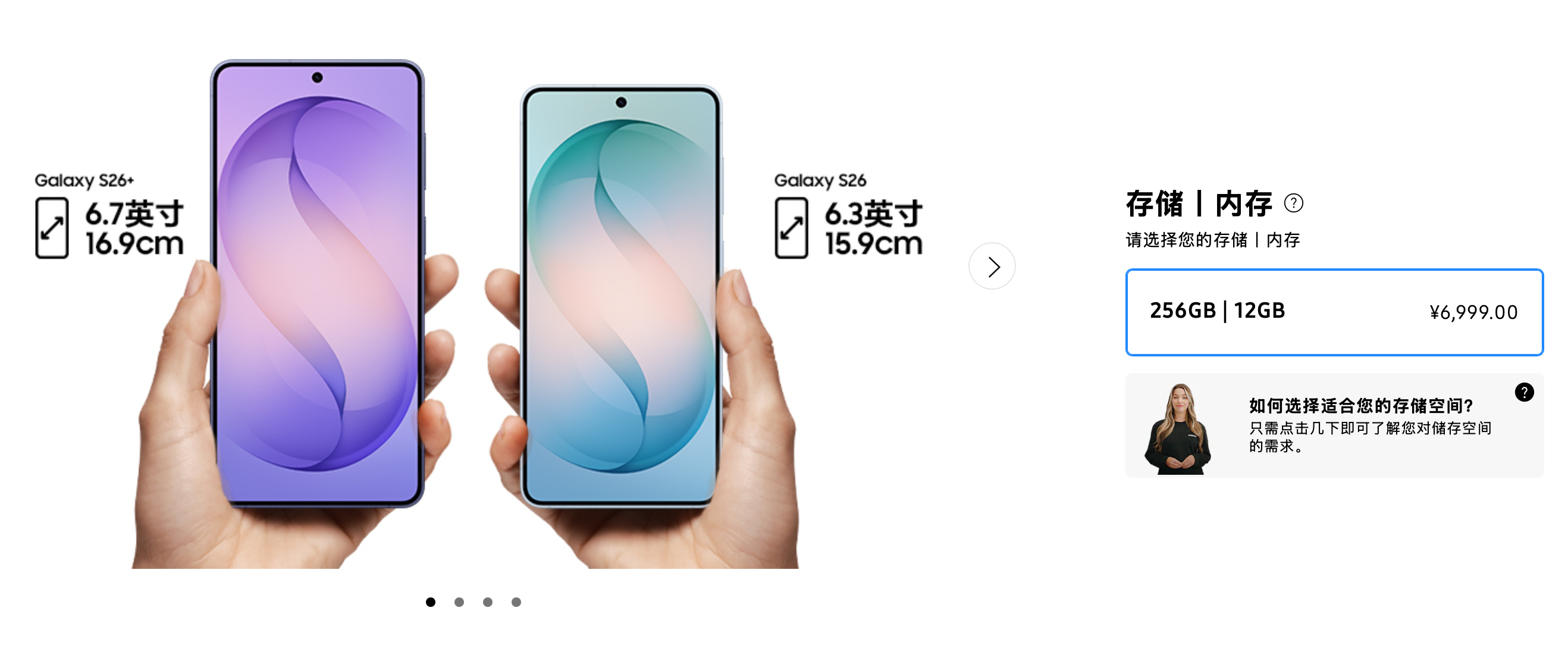国行的三星GalaxyS26系列价格 也都有了,S26目前只有一个12+256G的版本,售价6999元;S26+的12+256G 7999元,12+512G 9599元;S26 Ultra的12+256G 9999元,12+512G 11599元,16+1T 13999元。