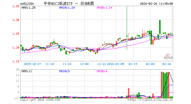 2月26日,截止午间收盘,平安MSCI低波ETF(512390)涨0.16%,报1.249元,成交额138.16万元。平安MSCI低波ETF(512390)重仓股方面,长江电力截止午盘涨0.12%,建设银行跌0.35%,大秦铁路跌0.39%,农业银行跌1.23%,双汇发展涨0.23%,工商银行跌1.28%,山东黄金跌1.31%,南京银行涨0.09%,安琪酵母跌1.68%,福耀玻璃跌0.19%。