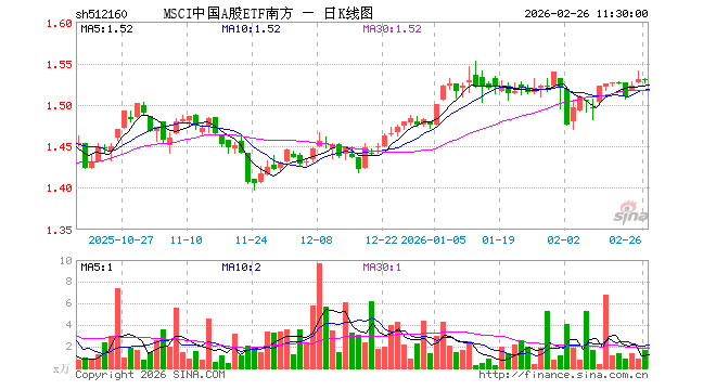 2月26日,截止午间收盘,MSCI中国A股ETF南方(512160)涨0.00%,报1.530元,成交额260.52万元。MSCI中国A股ETF南方(512160)重仓股方面,贵州茅台截止午盘跌1.23%,宁德时代跌4.94%,招商银行跌0.34%,工业富联涨1.24%,中国平安跌2.03%,紫金矿业跌1.09%,中际旭创涨0.34%,长江电力涨0.12%,农业银行跌1.23%,寒武纪涨1.22%。