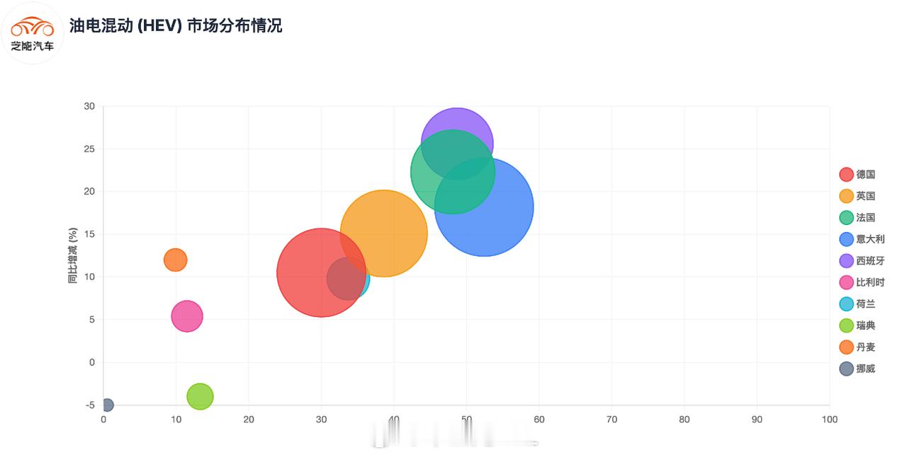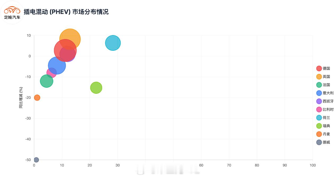欧洲纯电动正在形成“德国+法国+英国”叠加北欧高渗透率。● 插电混动(PHEV)合计99,654辆,占比约10.4%。◎ 德国(21,790辆)、英国(18,557辆)、意大利(11,638辆)、西班牙(8,740辆)是主要增量来源。◎ 荷兰(8,025辆)和爱尔兰(5,183辆)也表现突出。