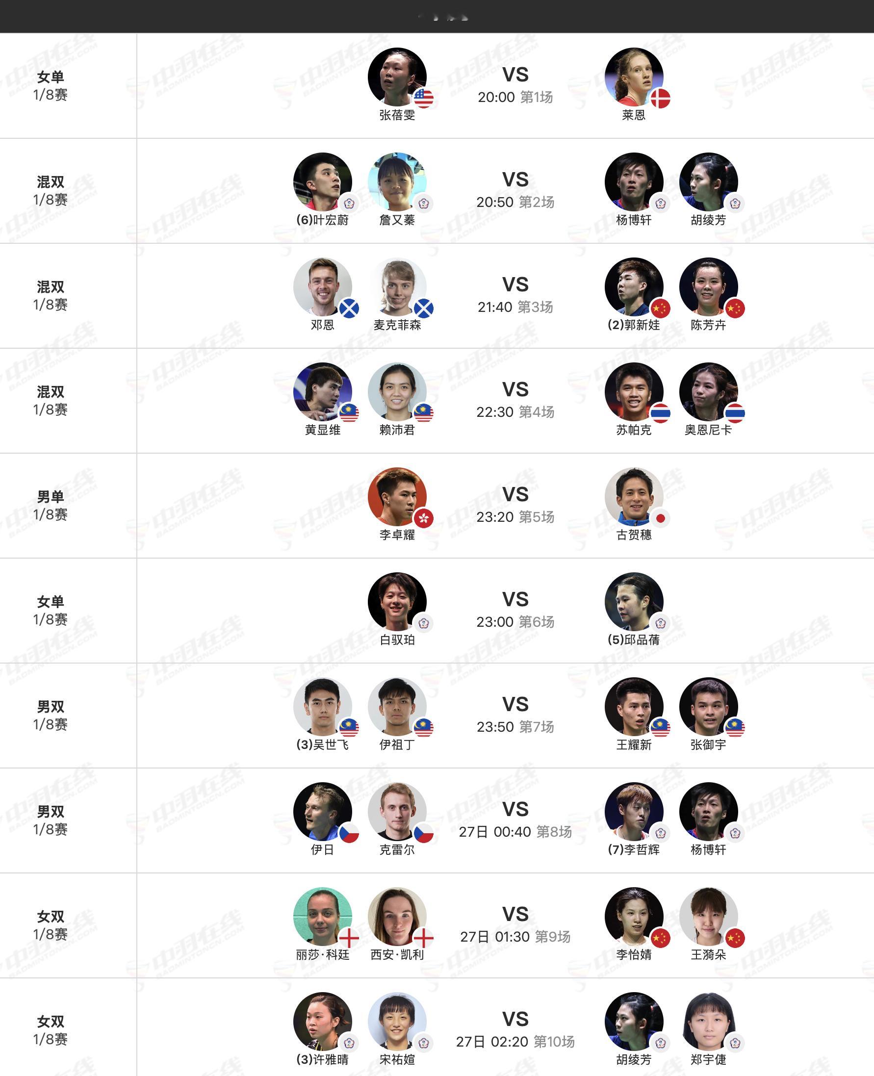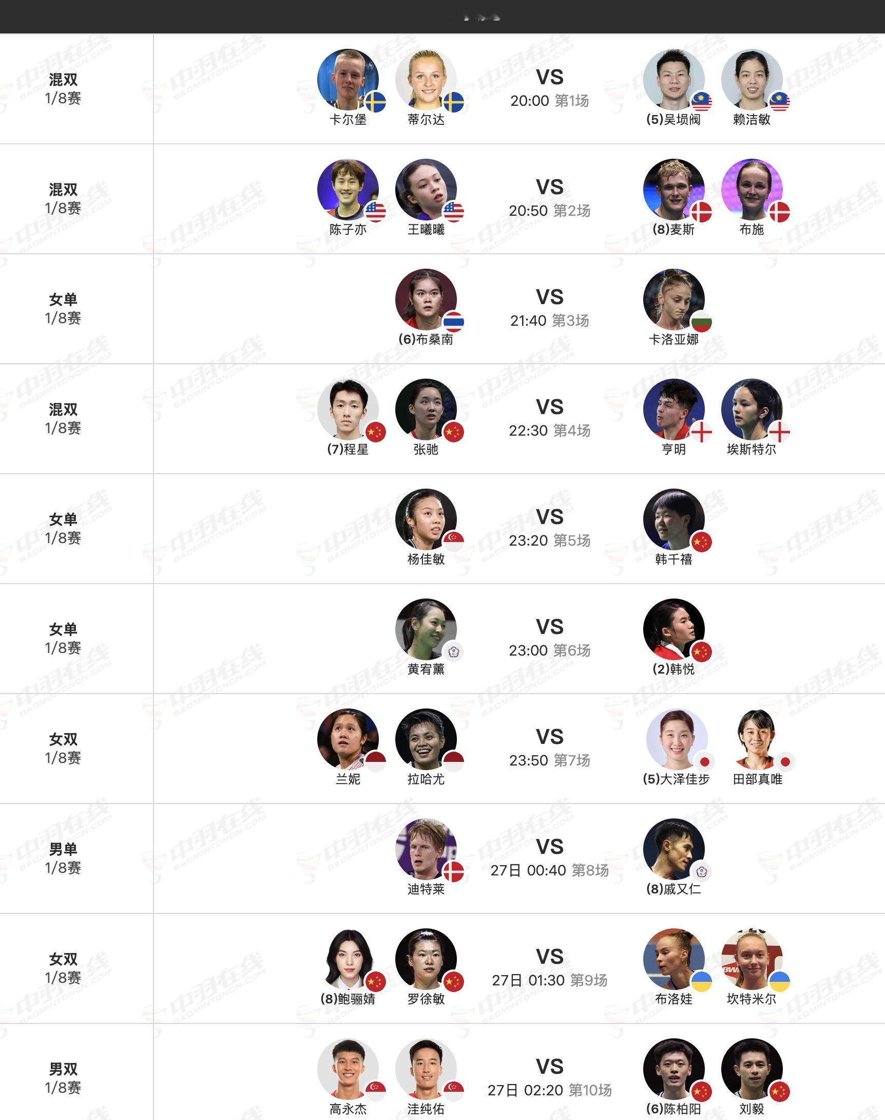 2026年德国羽毛球公开赛 2月26日各单项16进8,晚上20点开赛: