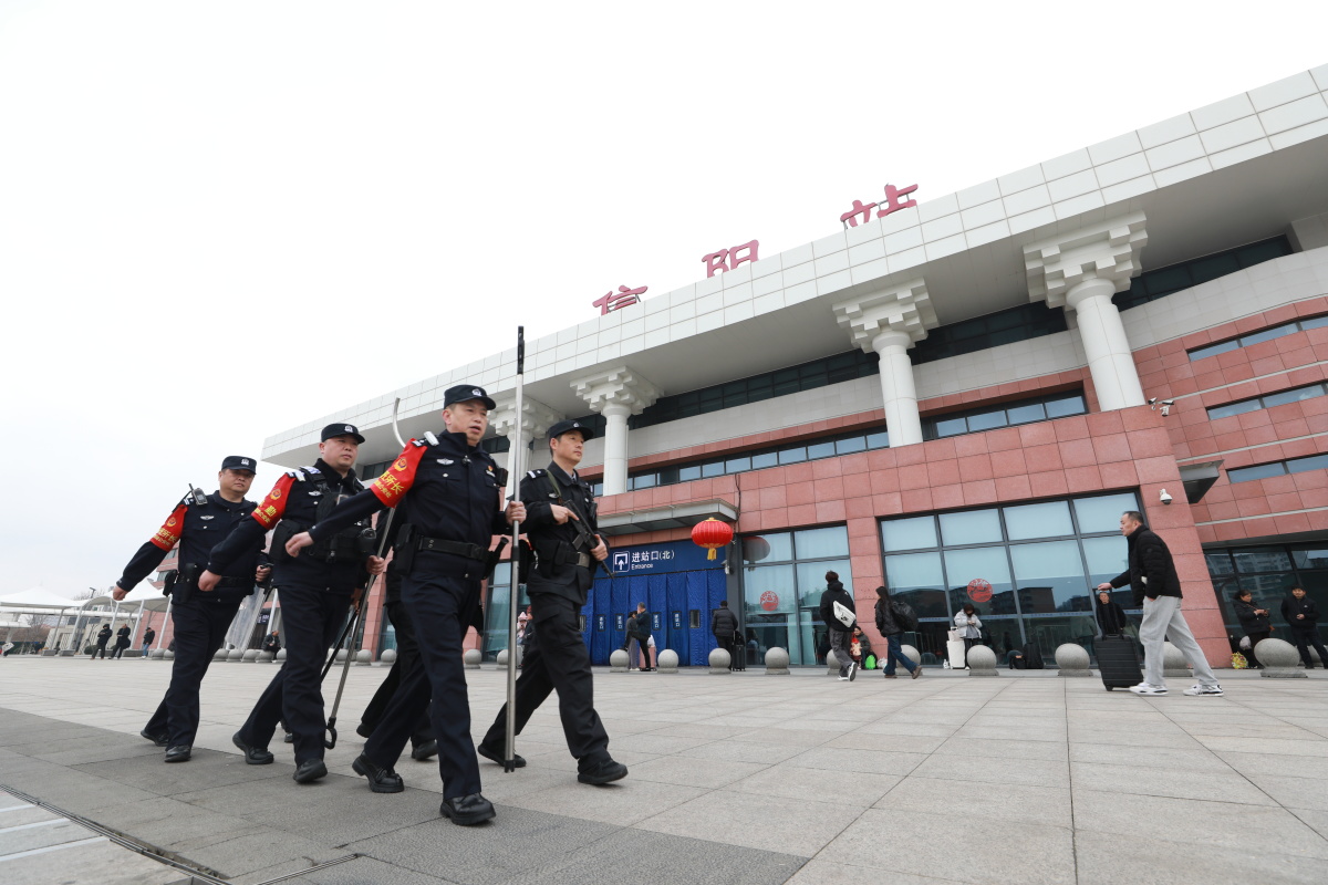 信阳火车站,铁路公安与地方公安开展联合巡逻,强化治安威慑,维护治安秩序,钟鹏宇摄