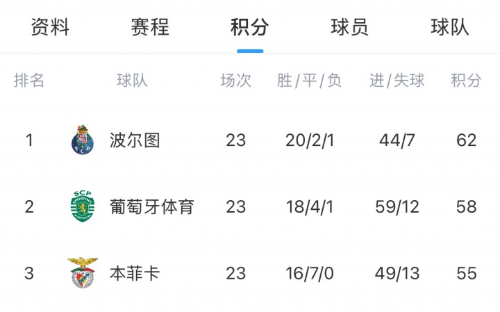 联赛方面,本菲卡本赛季16胜7平保持不败,积55分排名第三,落后榜首波尔图7分。