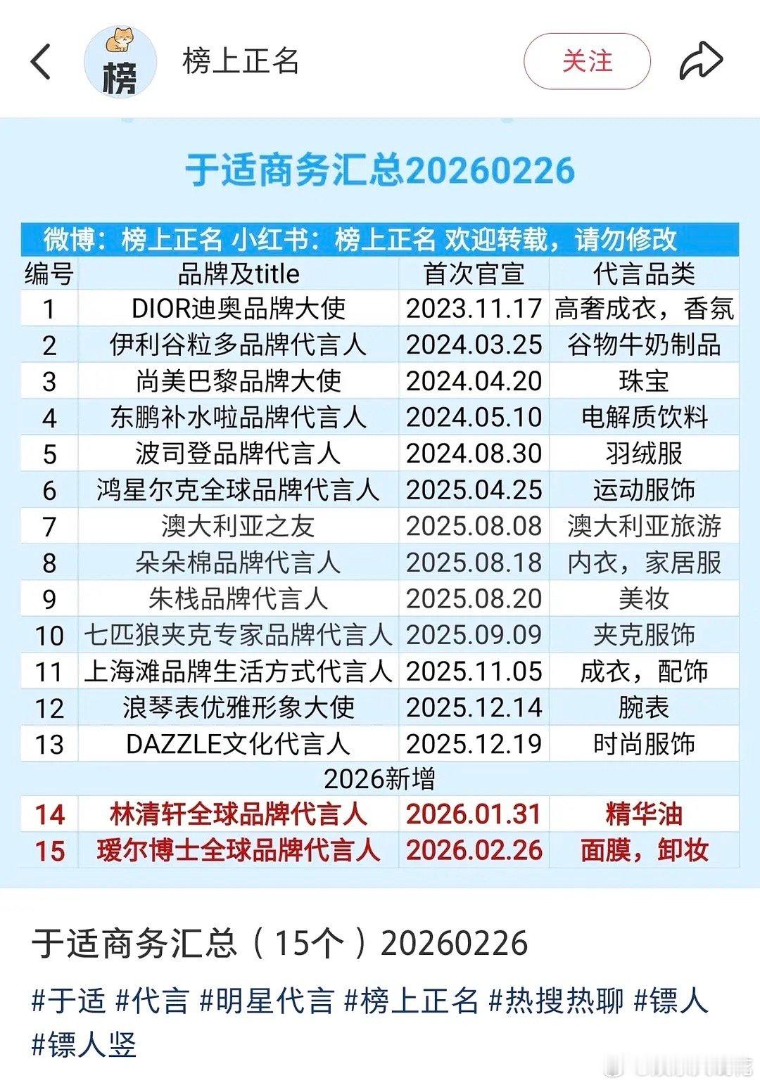 于适默默干大事中新代言官宣,26年新增两个全球代!品牌线下地广已铺,微博热搜页,