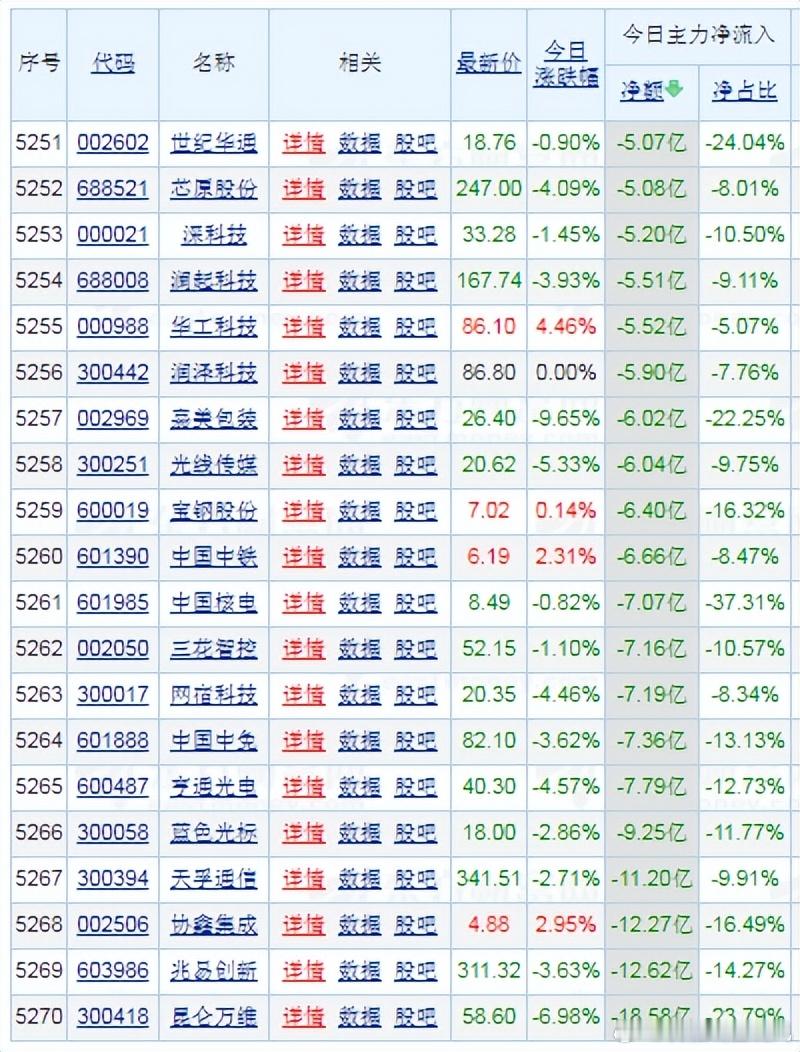收盘价:元 18.76。涨跌幅: -0.90%。净流入: -5.07亿