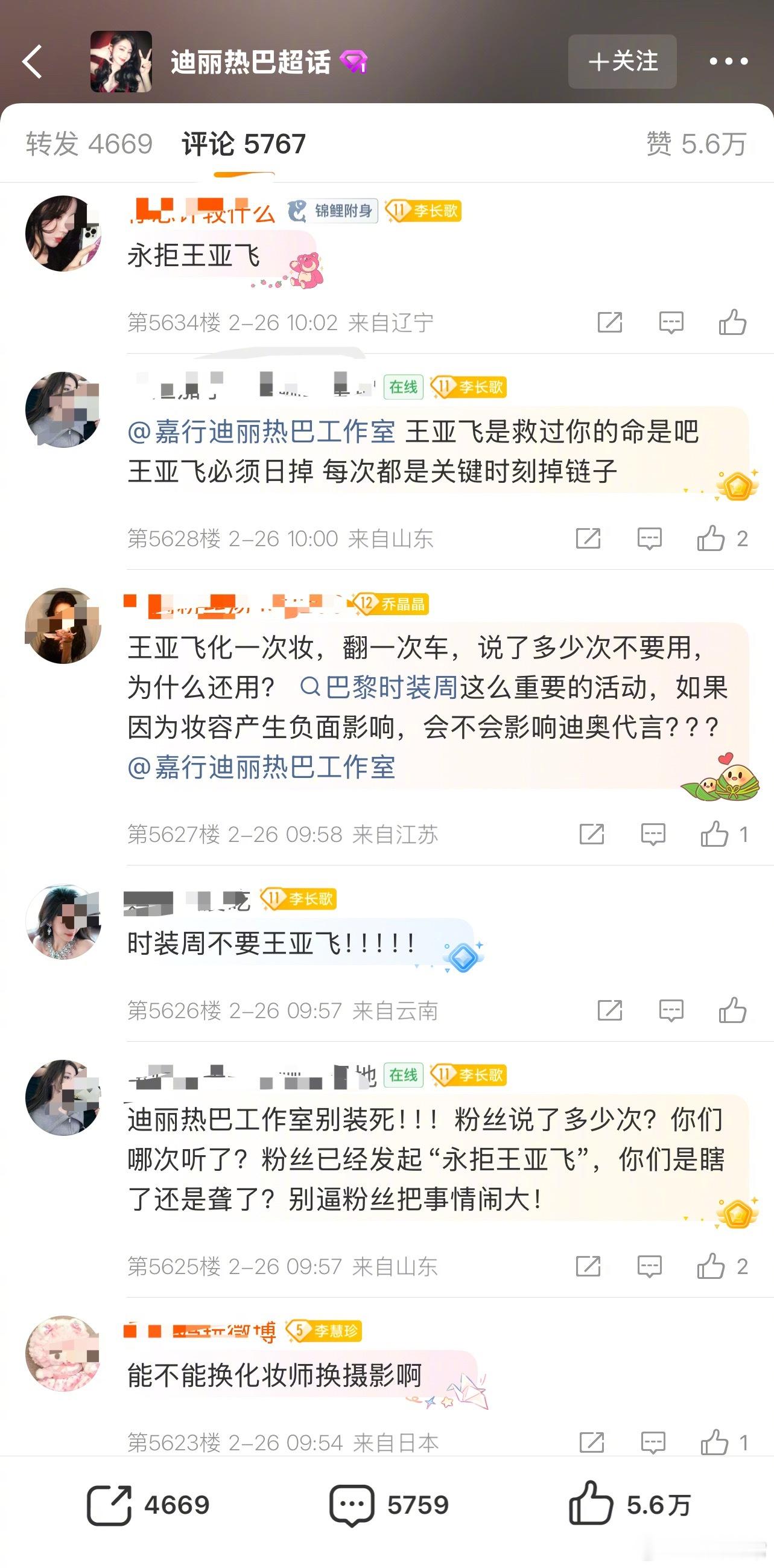 迪丽热巴粉丝在维权,不让化妆师王亚飞跟时装周王亚飞 迪丽热巴迪丽热巴粉丝七问王亚