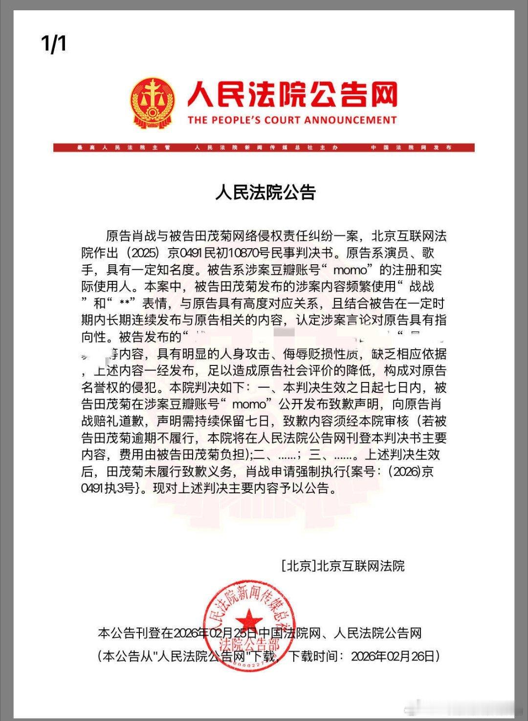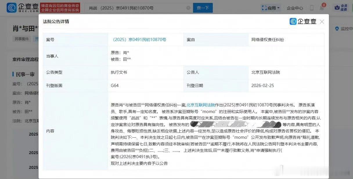 肖战向法院申请强执黑粉恭喜肖战工作室告黑成功!网络不是法外之地,请大家文明上网!