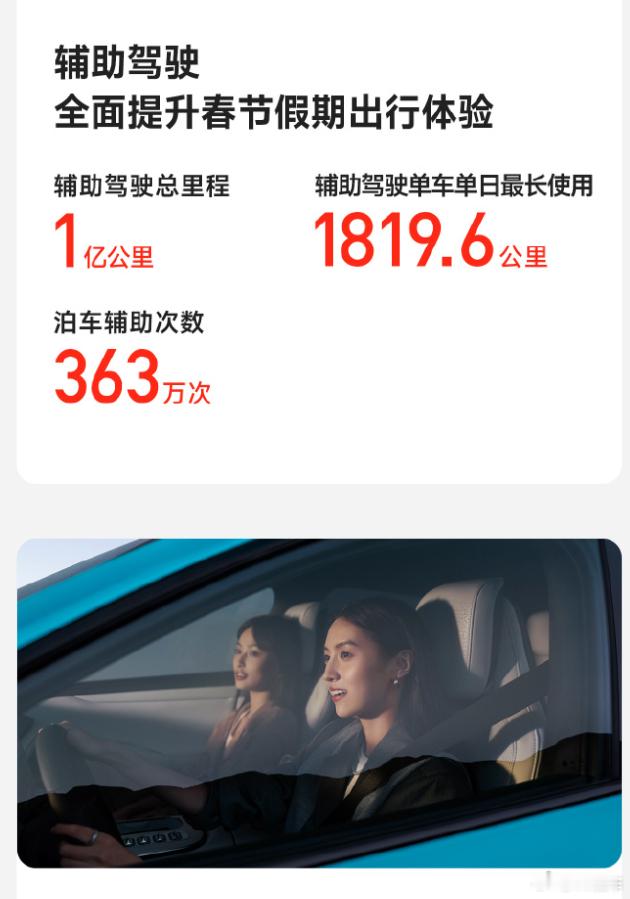 小米汽车 小米车主春节开了4亿公里有1亿用的是辅助驾驶,25%了。