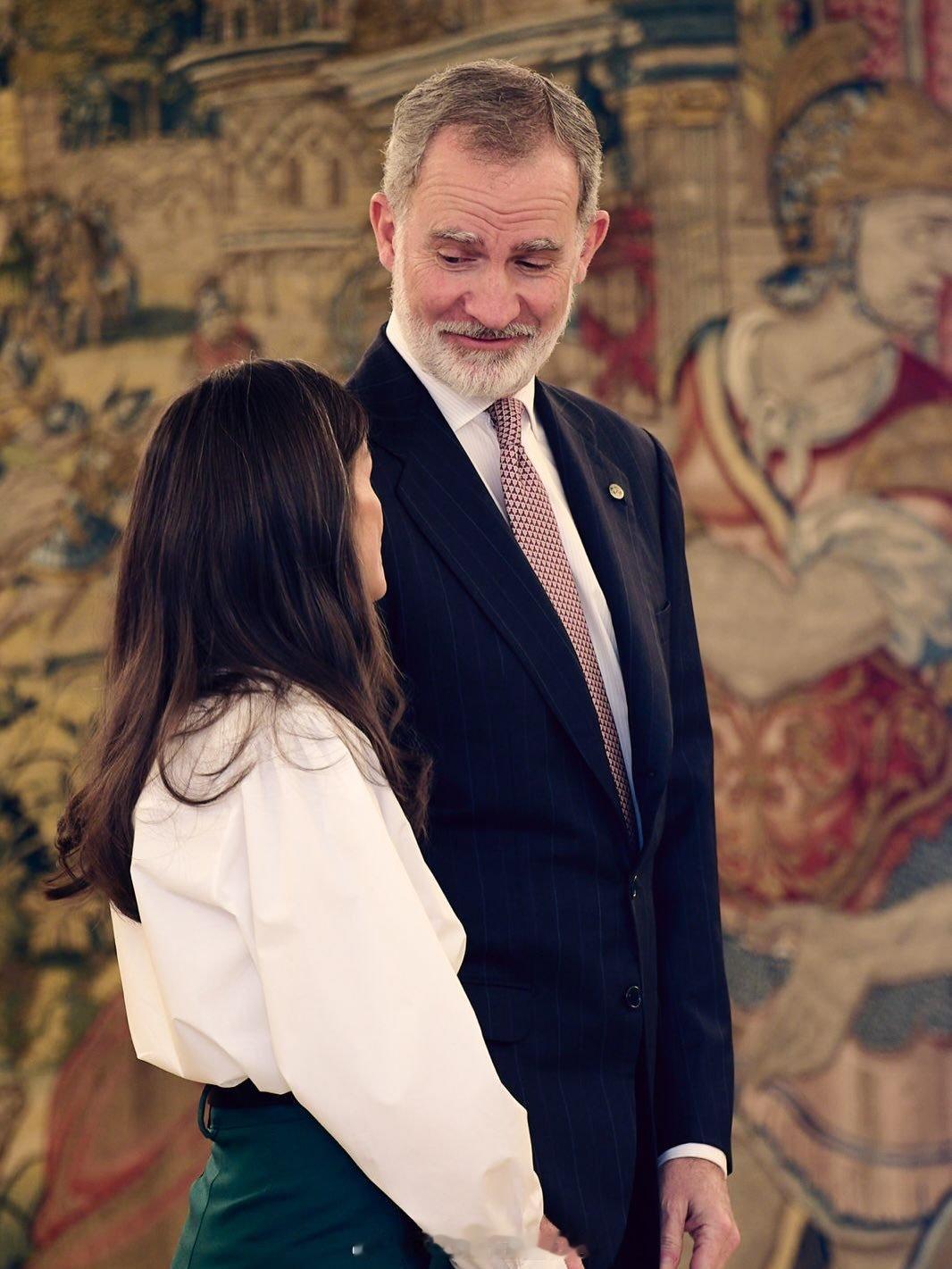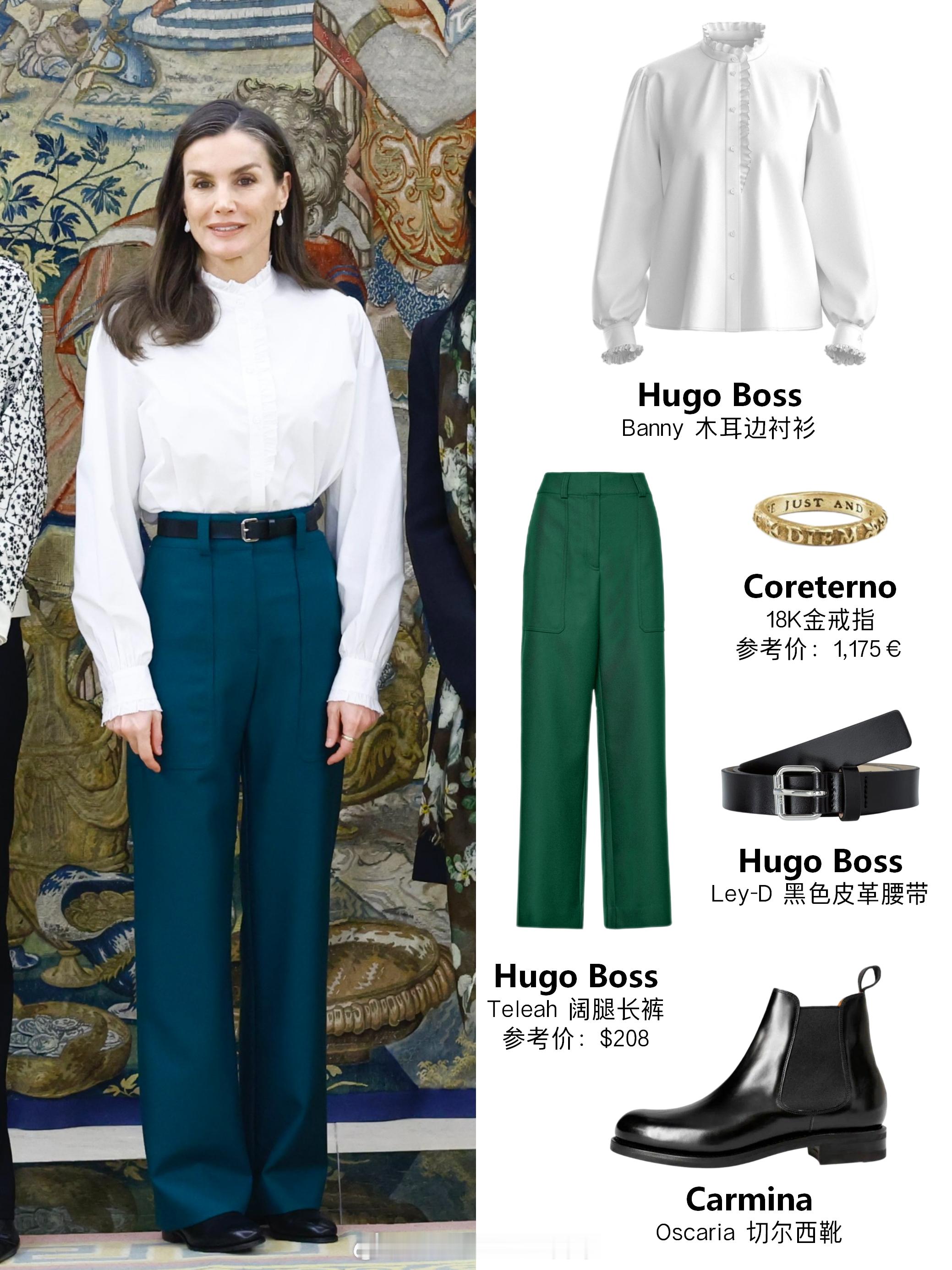 莱蒂齐亚 莱后2月25日出席接待会的OOTD白衬衫和长裤都来自hugo boss