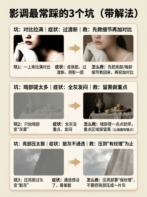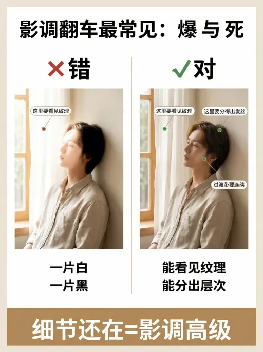 先把明暗关系做对,再谈颜色,照片才会“站得住”。