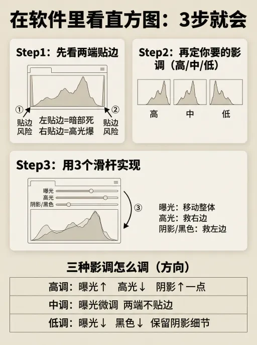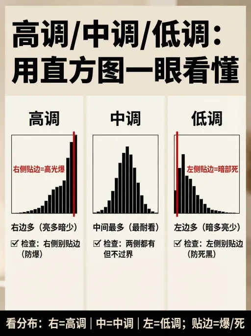 ✅ 三种影调怎么判断(直方图一眼看懂)