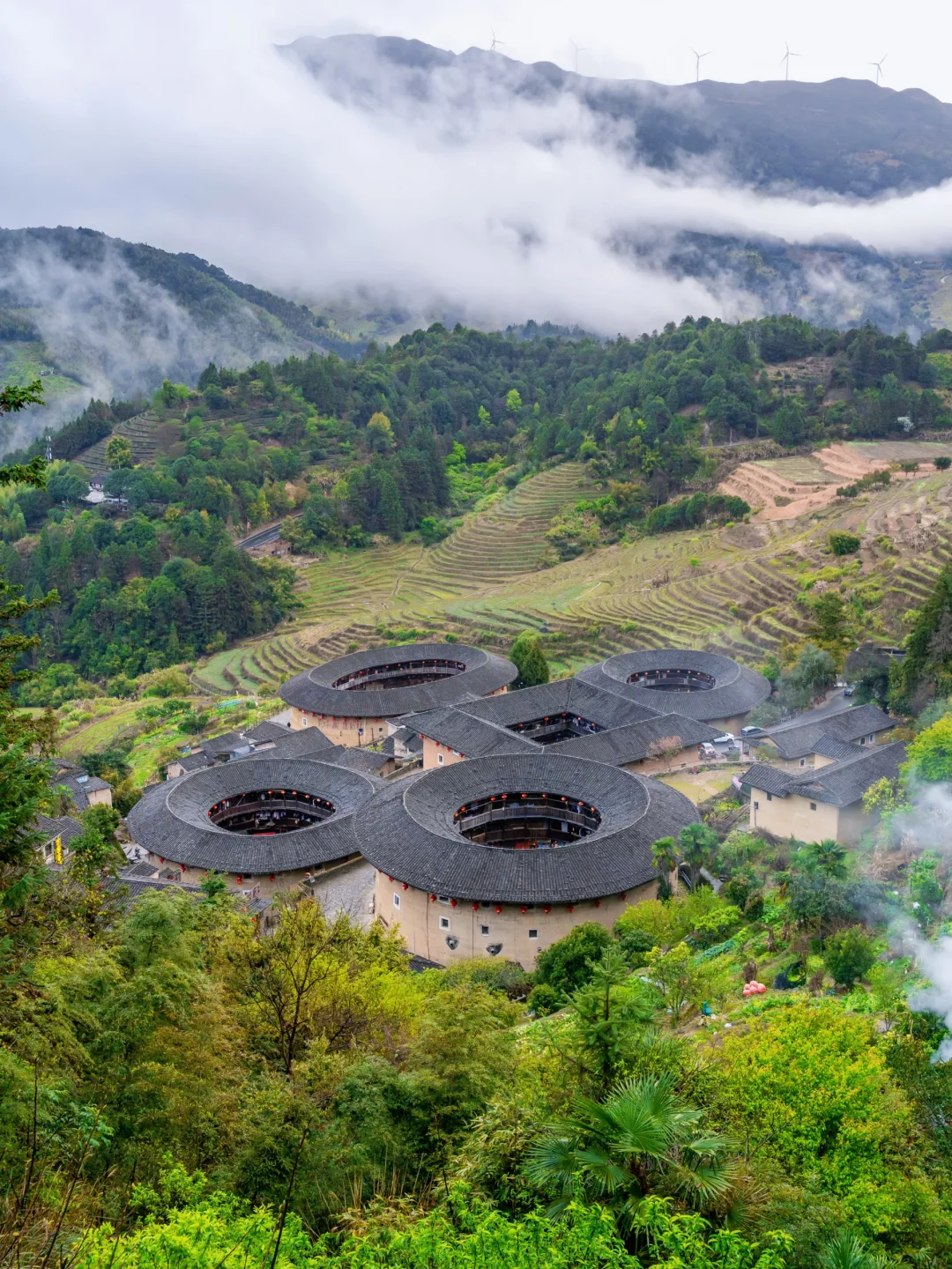 青山环抱里的世界遗产,巨型环形民居写满客家人的智慧。真的古朴又震撼!这里也是《大鱼海棠》的取景地