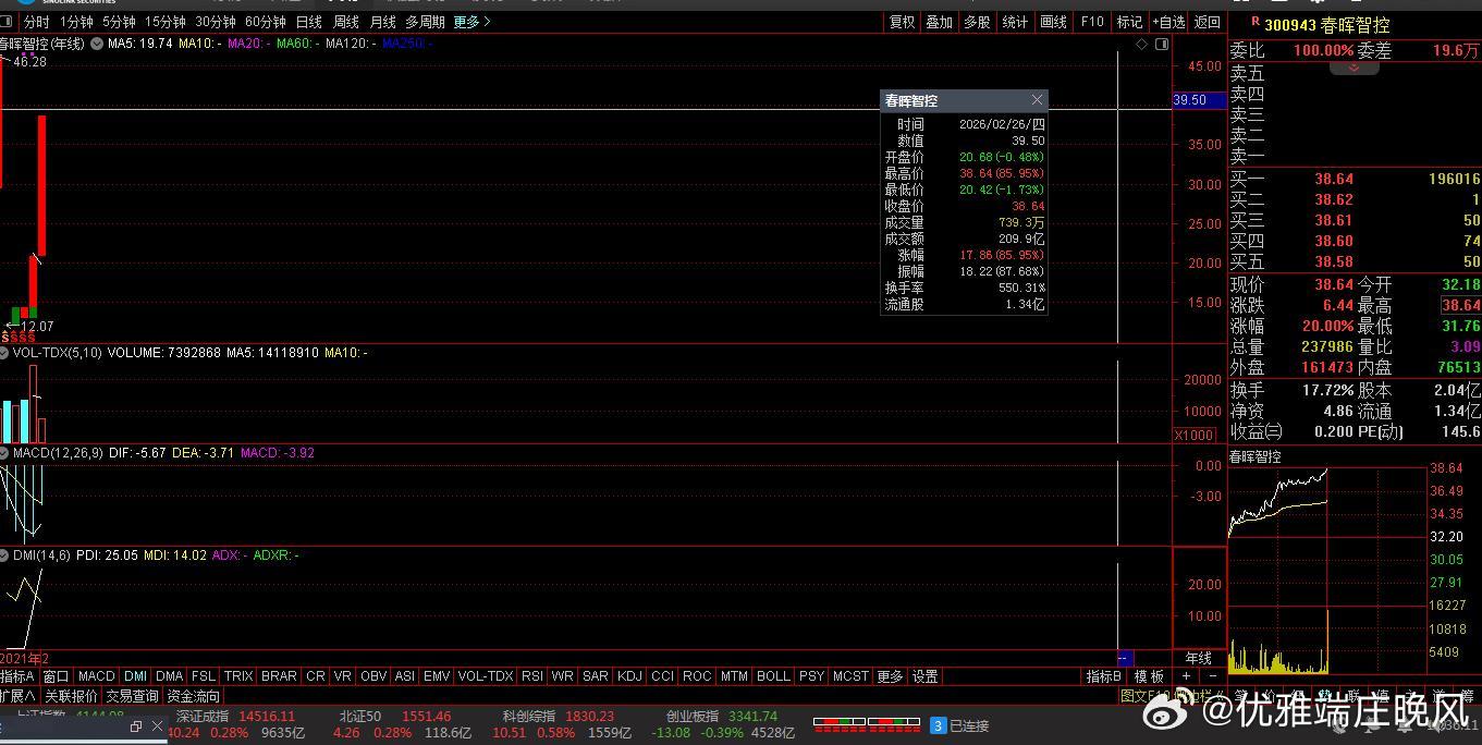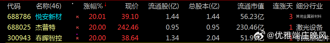 涨停龙头:惊艳今日:视野盘面:沪深北市:市场普跌:背景之下:悦安新材、杰普特、春晖智控等个股逆势涨停。并非当日:突发政策直接刺激。而是由于:AI算力需求爆发、国产替代加速、高端制造产业链共振等中长期产业趋势驱动。欲知推手:下面透视涨停板龙头股票: