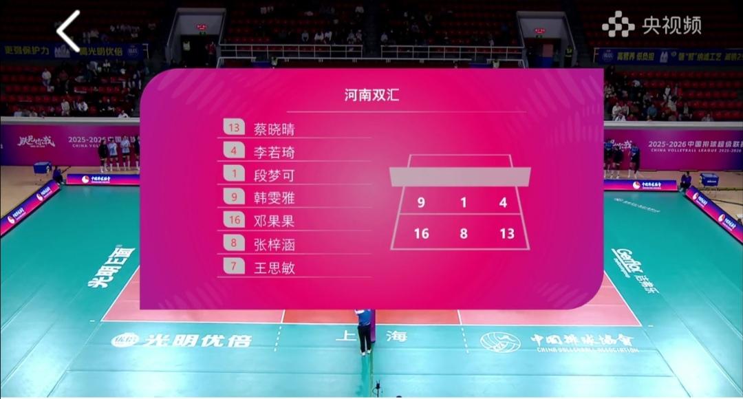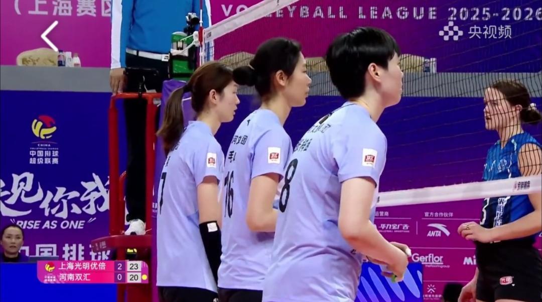C组河南双汇也成了“全华班”? C组河南双汇0:3不敌上海光明优倍。 我们知道C组四支球队全有外援,但比赛中河南队中没有18号日本橘井友香、23号波黑叶莲娜(转会)上场比赛! 但有从江苏女排“借来”的16号副攻毛唯嘉。 替补上场,2号位背飞还是挺好的。
