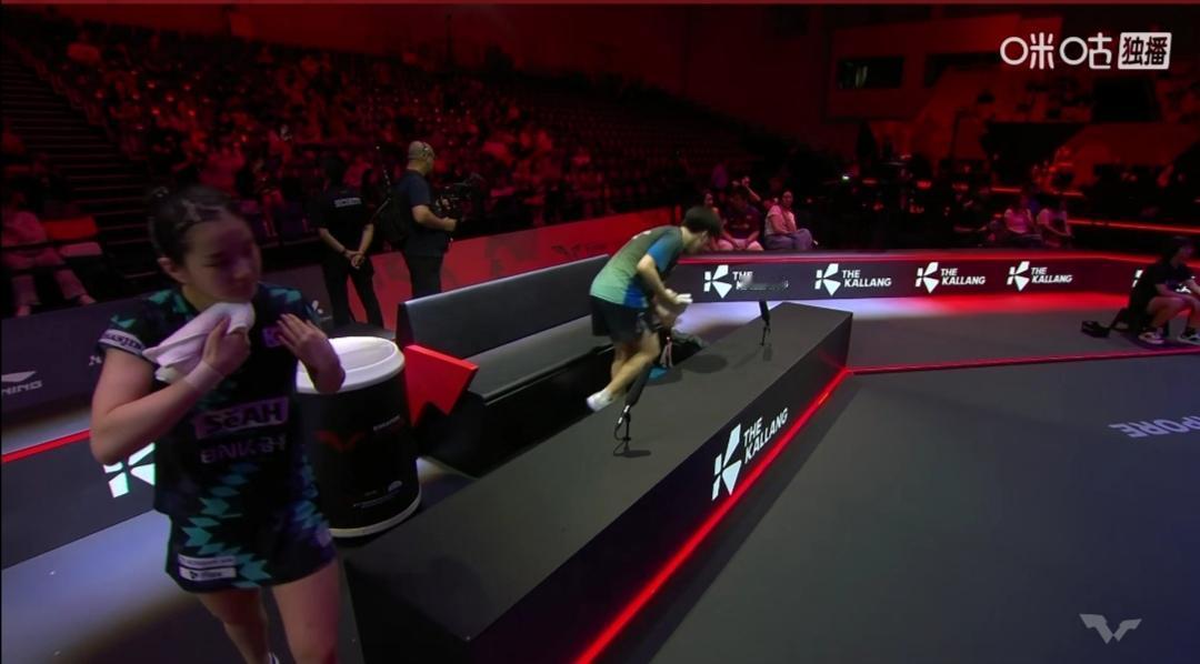 混合双打上半区半决赛,双方都没有场外指导! 新加坡大满贯赛混合双打上半区半决赛,陈颢桦(中国香港)/金娜英(韩国)“跨协会”组合2:3(9-11;14-12;14-12;6-11;6-11)不敌赛会1号种子林钟勋(韩国)/申裕斌(韩国)。 四人中有三个韩国人,比赛双方都没有场外指导!