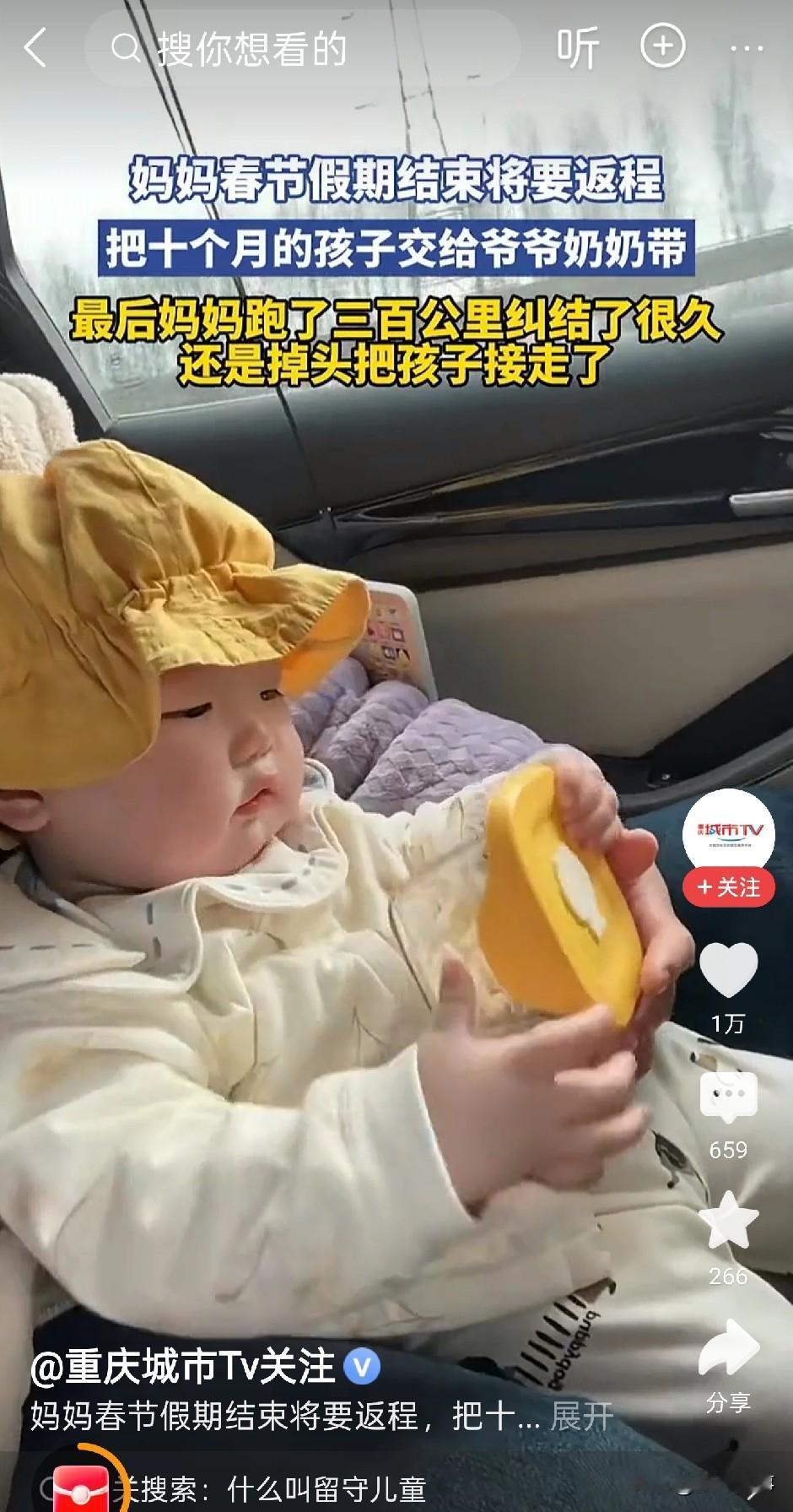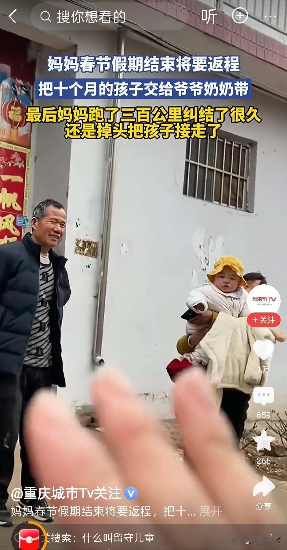 “再苦再累,我也不能丢下我的娃!”江苏一位年轻妈妈的经历,看哭了无数网友。春节假期结束,她返程回城上班,将10个月大的宝宝“狠心”留在老家,托付给爷爷奶奶照顾。可车子开出300公里,心底的牵挂如潮水般翻涌,她最终果断掉头,连夜赶回将孩子抱回身边——哪怕未来要一边上班一边带娃,哪怕再苦再累,她也坚定要亲自陪孩子长大。 这位妈妈和大多数背井离乡的年轻人一样,婚后没多久就和老公一起,在城里打拼谋生。 怀孕生子后,因为没人帮忙带娃,产假结束后,她就暂时把宝宝送回了老家,交给退休在家的爷爷奶奶照料,自己则和老公专心上班,努力赚钱,想着等条件好一点,再把孩子接到身边。 这次春节回家,抱着软乎乎的宝宝,妈妈的心就没放下过。眼看返程的日子越来越近,她的心里就越来越纠结,做了足足一个星期的心理建设,整夜整夜地睡不着觉。 身边的人,也都在一遍遍劝她,让她把孩子留在老家给爷爷奶奶照顾,她们在外安心打拼事业,等孩子稍大点,再接过去和她们一起生活。 是啊,她和老公在城里租房子住,上班节奏快,经常加班,也确实没有太多时间精力带娃;爷爷奶奶疼孙子,肯定也会尽心尽力照顾,把孩子留在老家,她既能安心上班,孩子也能被照顾得很好。 道理她都懂,可心里的不舍,却怎么也压不下去。 返程当天,天还没亮,这位妈妈就起床了,一遍又一遍地给宝宝喂奶、换衣服,轻轻抚摸着宝宝软乎乎的小脸蛋,眼泪在眼眶里打转,却强忍着没掉下来。 她不敢多看宝宝一眼,怕自己多看一眼,就再也狠不下心离开了。 “爸,妈,孩子就交给你们了,辛苦你们了,我们有空就回来看看。”这位妈妈声音沙哑地嘱咐着公婆,不敢停留,转身就上了车。 起初,她还强装镇定,默念着“宝宝会被照顾得很好”。 可车子越开越远,不安的情绪如潮水般涌来。她满脑子都是孩子:“这会儿醒了没?见不到妈妈会不会哭?辅食吃得惯吗?” 当车子开出300公里时,这位妈妈再也忍不住了,直接让老公掉头回家。 老公没有多问,而默默打了转向灯。 返回老家的路上,这位妈妈的心反而越来越踏实。 推开家门的那一刻,她一把抱过孩子,紧紧贴在怀里。她对着公婆愧疚又认真地说:“爸、妈,我还是想自己带。” 两位老人没有生气,只是叹了口气,满眼心疼:“我们懂,当妈的都这样。” 就这样,她抱着孩子,重新踏上了返程。 这一次,在车里,她再也没有了焦虑,有的只有安心和欣慰。 这件事在网上传开后,也引起了网友的热议:有人说:“不是老人带得不好,是妈妈的位置谁也替代不了。”、“钱可以慢慢赚,可孩子的成长,错过了就再也回不来。” 也有人无奈感慨:“其实谁不想陪在孩子身边?只是很多人被生活困住,连选择的权利都没有。” 大家都明白,这位妈妈不是任性,而是母爱最本能的反应。 尤其是如今的这一代年轻人,总是在“谋生”和“陪娃”之间反复拉扯。 把孩子留在老家,是为了生活;把孩子带在身边,是为了心安。 没有哪一种选择绝对正确,但所有人都应该懂的是:父母陪伴缺位的遗憾,是多少钱都补不回来的。 这位妈妈用一次300公里的掉头告诉我们:无论生活多艰难,都不要轻易放弃陪伴孩子的机会,因为有些遗憾,一旦造成,就是一辈子。 最后,也想问问大家,如果是你,面对忙碌的工作和年幼的孩子,你会选择将娃留在老家,还是咬牙自己带?在生计与陪伴之间,你又会如何取舍呢?