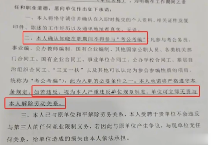 教育大计,教师为本。期待劳动仲裁的公正裁决,能厘清择业自由与单位管理的边界,让“禁考条款”这类无效格式条款退出历史舞台,也让更多用人单位明白,唯有在合法的框架内尊重劳动者权利,才能实现劳资双方的共赢。这场关于契约与权利的博弈,亟待法律给出公正答案,别让强行留人的“霸王条款”成了行业潜规则。