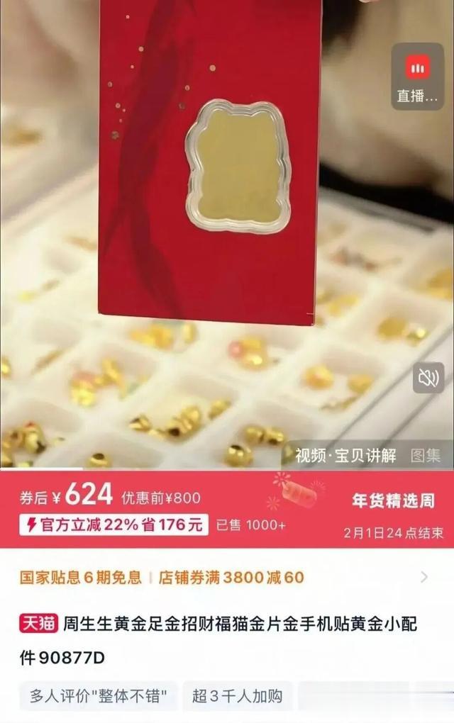 据北青报2025年报道,公开数据显示,淘宝上的足金手机贴纸卖出了超20万片。某网店卖家告诉长江云新闻记者,其店铺一款2毫克黄金手机贴月销量超500单,他解释了价格走高的原因:“小克重黄金工艺费占比很高,再加上包装、物流和品牌运营成本,叠加近期整体金价高位运行,折算下来克价自然水涨船高。”