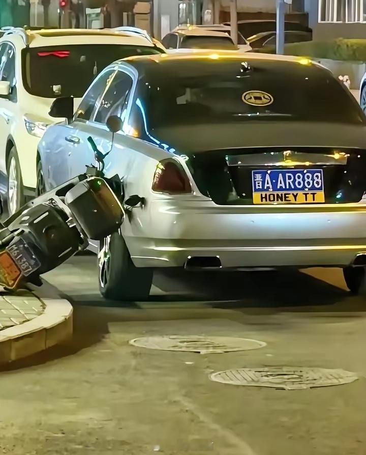 开年第一炸,电动车直接歪倒在劳斯莱斯身上。这辆劳斯莱斯挂的车牌号,光看着就让人心