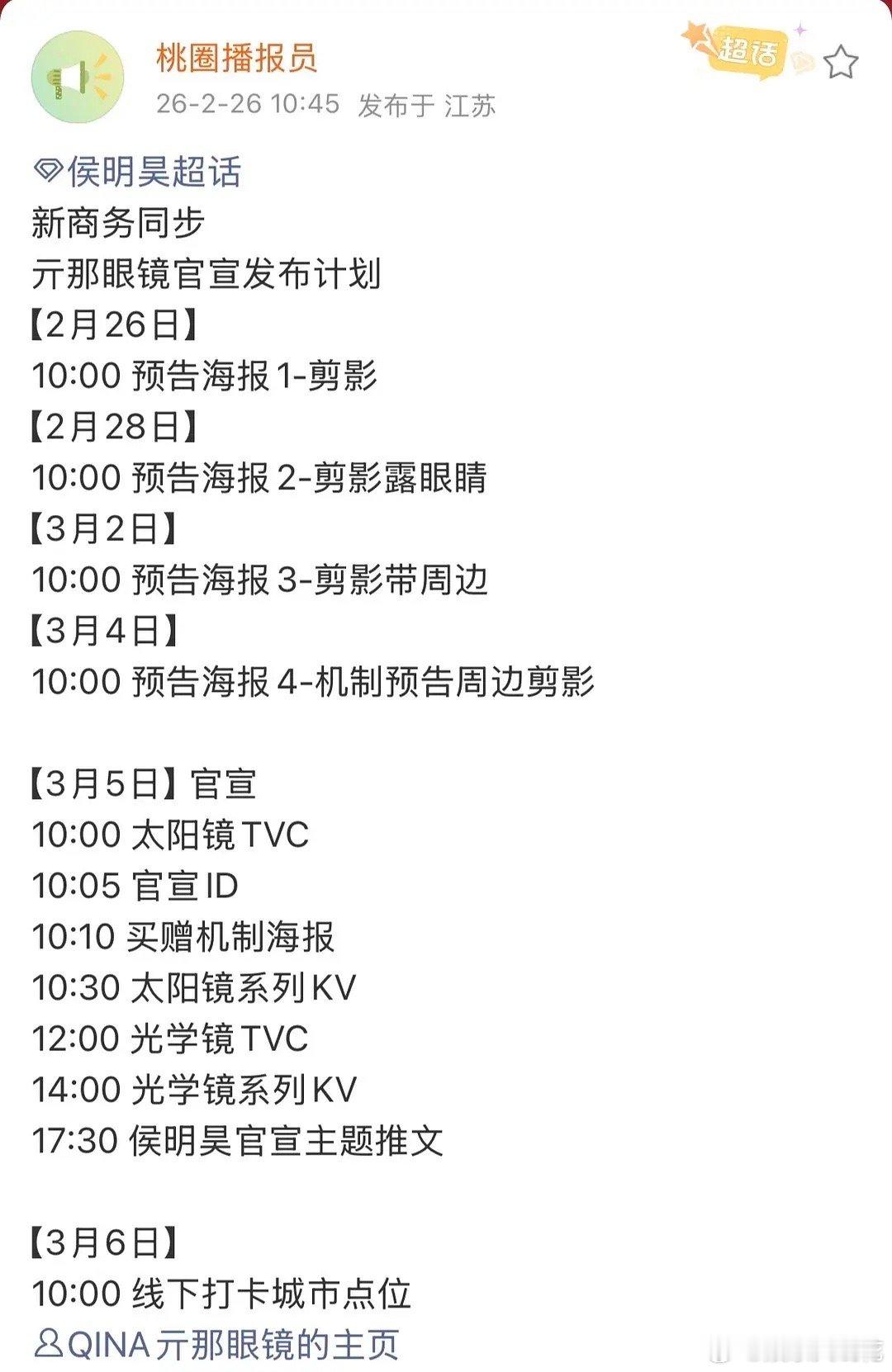 在剧播即扑的大环境下还能有此成绩,恭喜小侯啊刚进入2026年不久已宣8个,两个月已新增10个sw,去年十月入青云开播后已新增17个sw,真的是播出声量越播越有啊