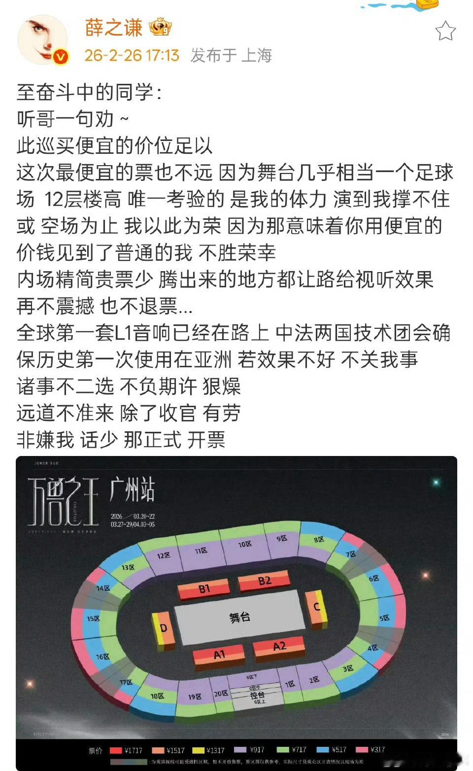 薛之谦巡演音响薛之谦用的音响是历史上首次在亚洲使用 薛之谦官宣万兽之王广州站开票