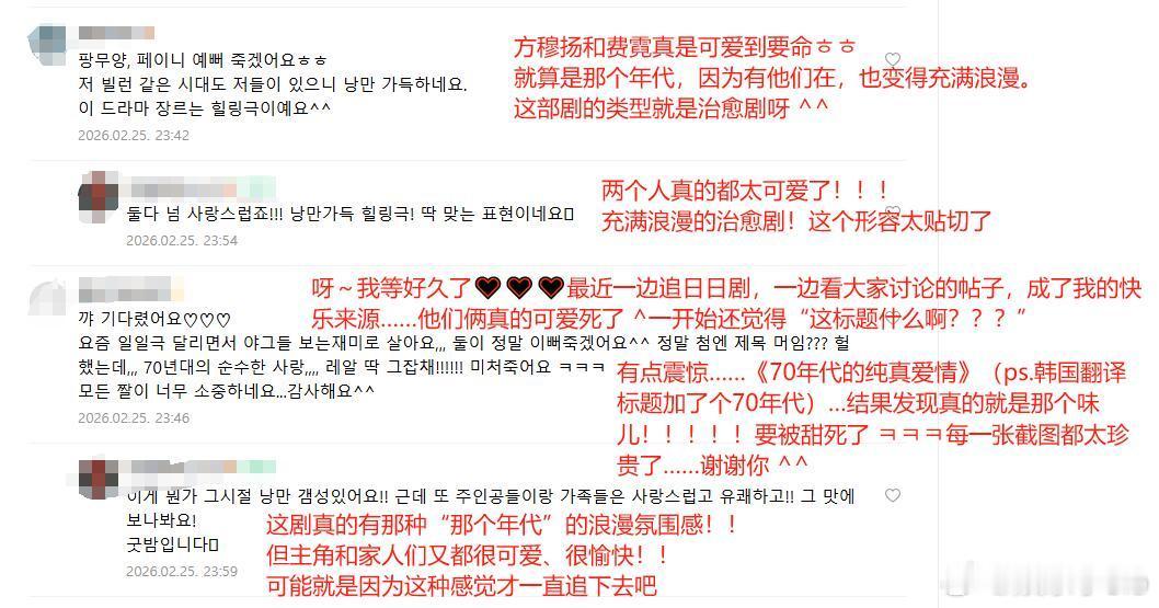 韩网评《纯真年代的爱情》∶一部治愈系年代剧之前hgr主要看古装现偶,这还是她们第一次这么爱看年代剧,而且这剧国内的热度口碑也不错啊