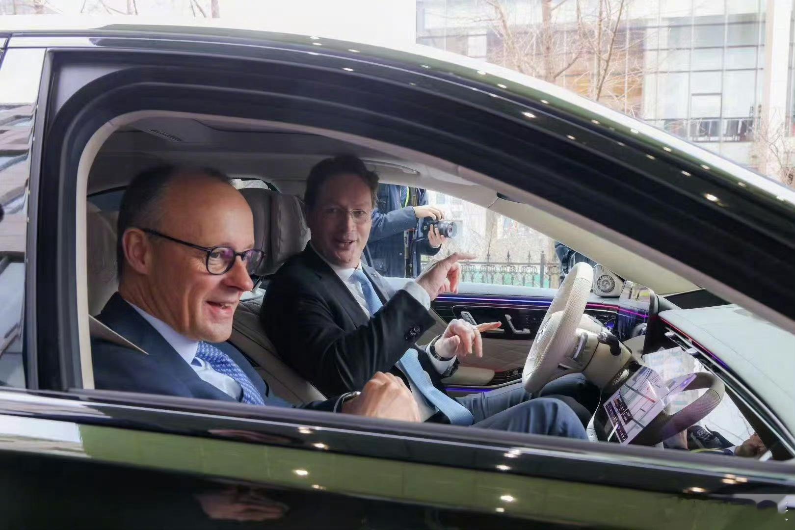 德国总理默茨亲自体验全新奔驰S级,试了中国团队做的智能驾驶,看这个表情,是挺喜欢啊