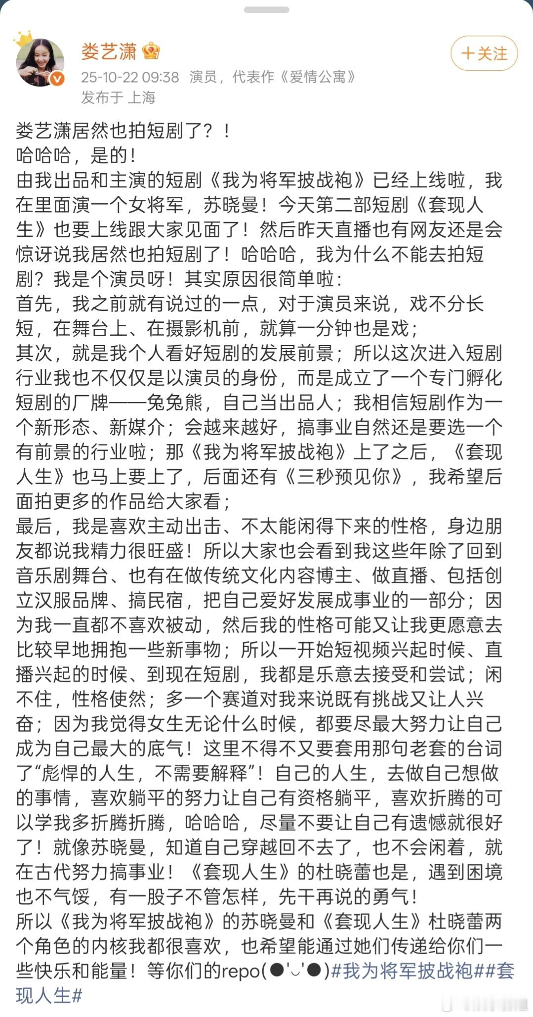 胡一菲诺澜在短国相遇了娄艺潇刘萌萌都演短剧,胡一菲诺澜在短国相遇了!此前娄艺潇也回应过,以后应该也会有更多演员去演短剧吧