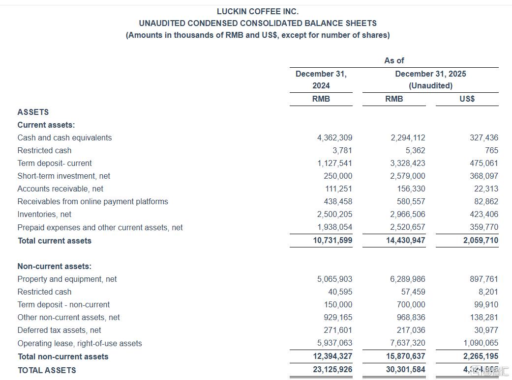 客户数方面,瑞幸咖啡第四季度月均交易客户数同比增长26.5%,达9835万;2025年全年月均交易客户数同比增长31.1%,达9415万。