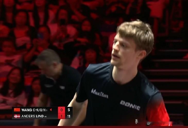 WTT新加坡大满贯赛的赛场上,晚间黄金时段迎来一场球迷十分期待的强强对话。那就是国乒名将,现世界排名第一的王楚钦与来自丹麦的老将林德之间的正面交锋。 由于林德在世界赛场上现在也具有很强竞争力,经常可以把一些世界顶级高手斩落于马下,所以这场比赛对于王楚钦也是一个极大的考验,果然,比赛一上来,在双方开局战成3:3平之后,林德诗5:3、6比4小幅拉开分差,并在王楚钦依靠斜线进攻5:6迫近比分之后,一路连续得分,直接打出一波儿5:0的小高潮,以11:5的悬殊比分,利用王楚钦出手有点着急自身失误有点偏多,而且出手节奏把握不算好的机会,实现了大比分的胜出,让自己拿到1:0的比分领先。 而第二局的比拼当中,王楚钦则在双方开局2:2战平之后,后面利用发球和发抢以及接发球抢攻战术打出一波得分高潮,直接拉开分差来到5:2和6:3,以及8:4和9:4。不过在拿到5分领先优势之后,王楚钦在林德控节奏和非常规的出手面前,自身失误有点偏多,连续送分的同时,也让双方分差被迫近到了8:10。随着王楚钦吃发球林德也把分差继续缩小到9:10,王楚钦则在这个时候叫了暂停。好在暂停回来,王楚钦还是拿下关键分,11:9扳回一城,双方大比分战成1:1平。 比赛的第三局,林德前半局似乎又找回了在第一局比赛当中那种控节奏打法的感觉。这帮助他一上来就占据7:2的比分领先,而王楚钦则在后面分差被明显拉开之后打的比较顽强不断迫近分差,并逼迫林德也叫了暂停,不过暂停回来,王楚钦依然拼的比很凶,关键分上也很敢出手。打出一波得分高潮之后,10:10追平比分,并在关键分上打出自信和稳定性,13:11艰难赢下第三局,占据大比分上的2:1领先。 双方的第四局比拼,两人开局迅速战成2平3平以及4平,5平,6平,后面也继续打成7平和8平,但关键分上王楚钦的斜线回球帮助他10:8迎来局点,并依靠一个扣中路高数直接得分,11:8赢下双方第四局也就此以3:1的总比分,艰难战胜对手,锁定一个男单八强的席位。让我们再次恭喜王楚钦!
