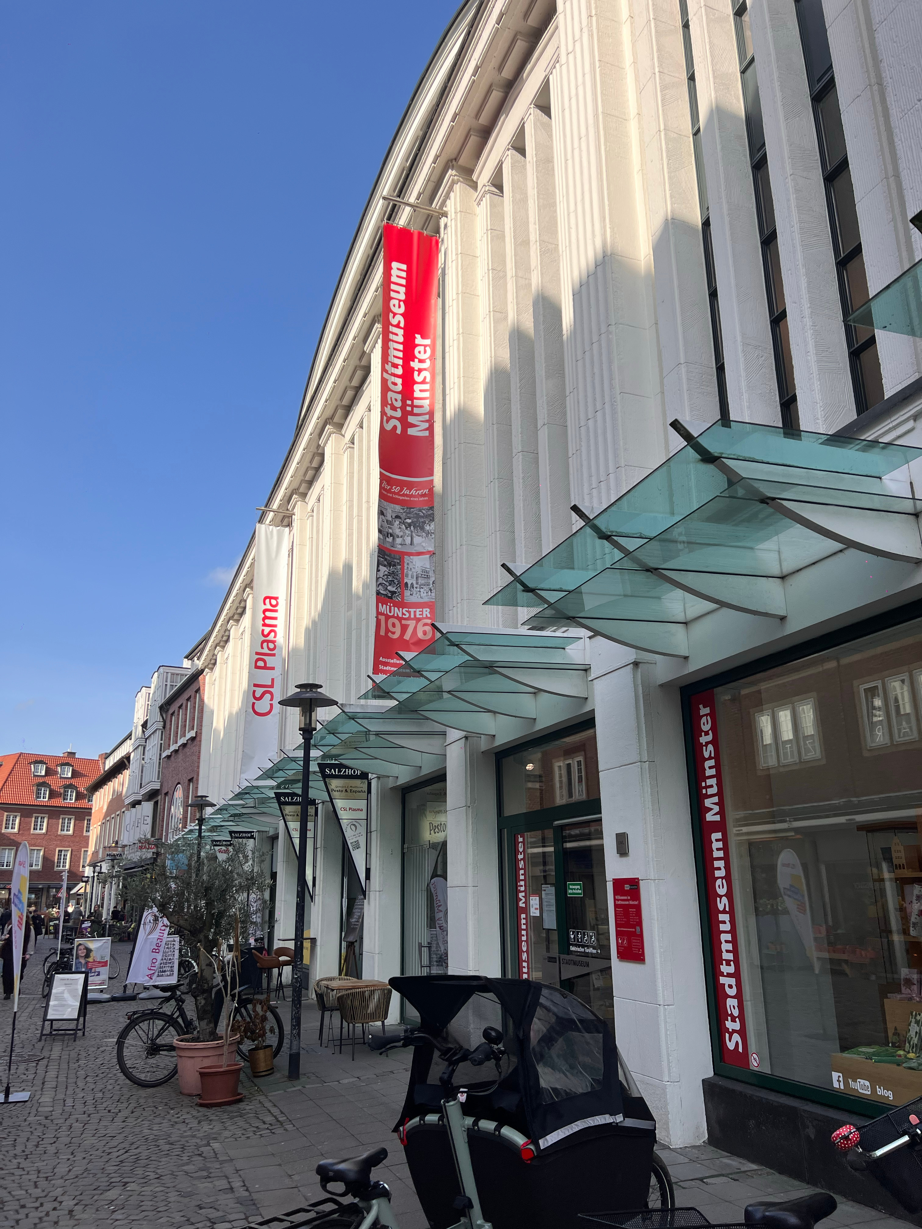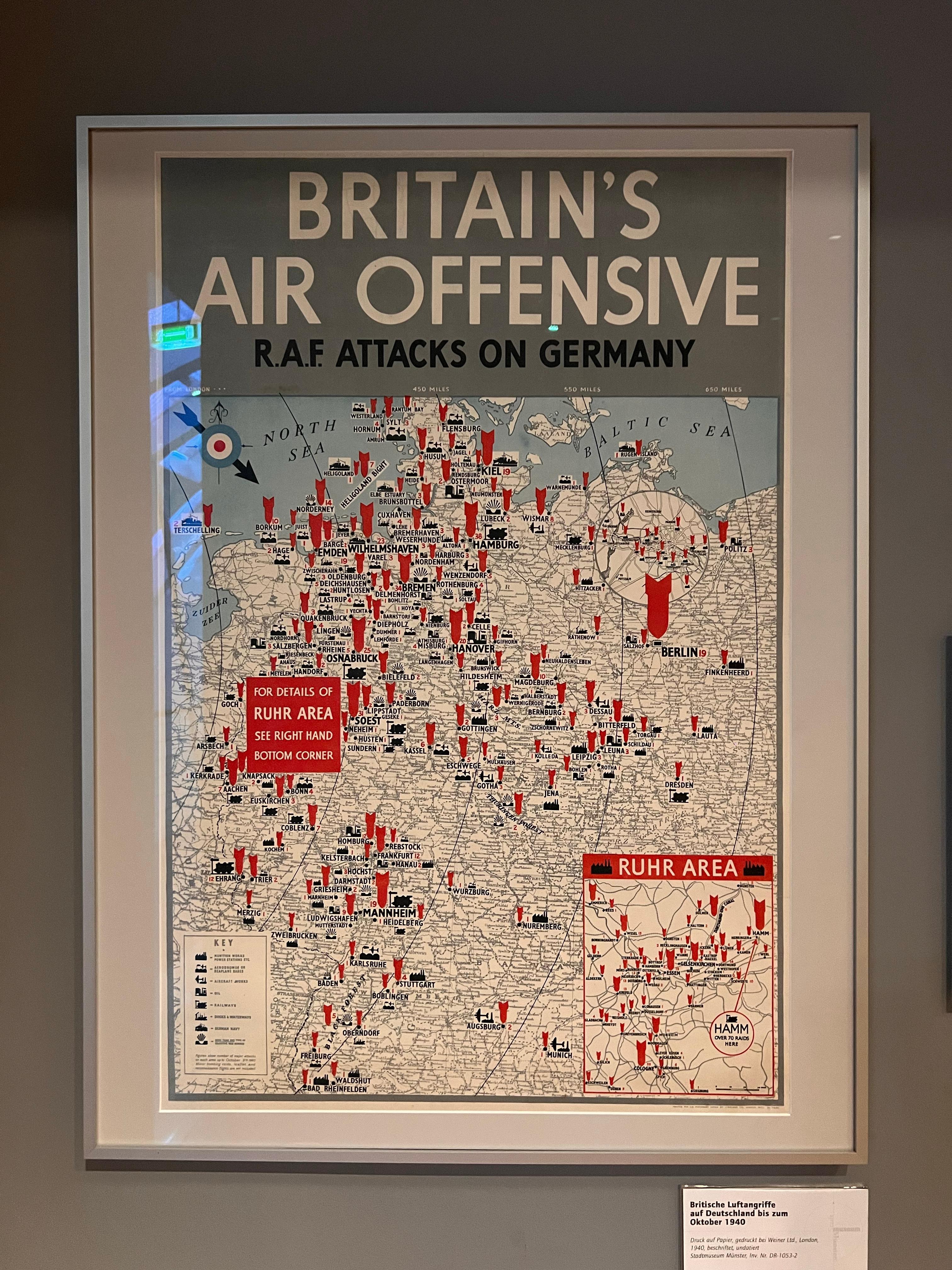 博物馆狂魔今天在🏛️ 明斯特城市博物馆(Stadtmuseum Münster)简介:被惊艳到!在Metz之后最爱的市立博物馆,并且也是免费的!馆舍本身是一座1910/1911年的历史百货大楼(图4),保留了原始的新艺术风格立面,1989年正式作为博物馆开放。🌟一、二楼的常设展按时间线讲述明斯特从公元793年建城至今的故事,包括:◦ 中世纪的城市防御工事与贸易网络◦ 16世纪再洗礼派统治时期的动荡(展出了当年用于折磨Jan van Leyden的刑具)◦ 二战中的轰炸损毁与战后重建(图2的1940年空袭地图就是这段历史的重要展品)◦ 现代“自行车之城”的城市规划演变